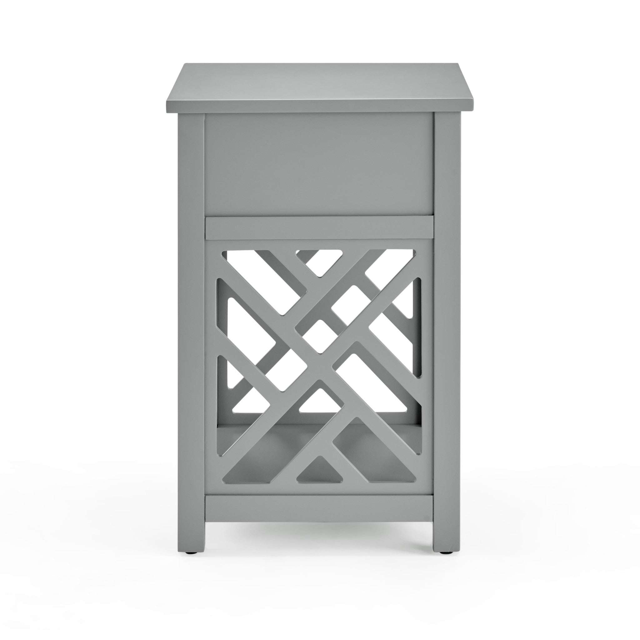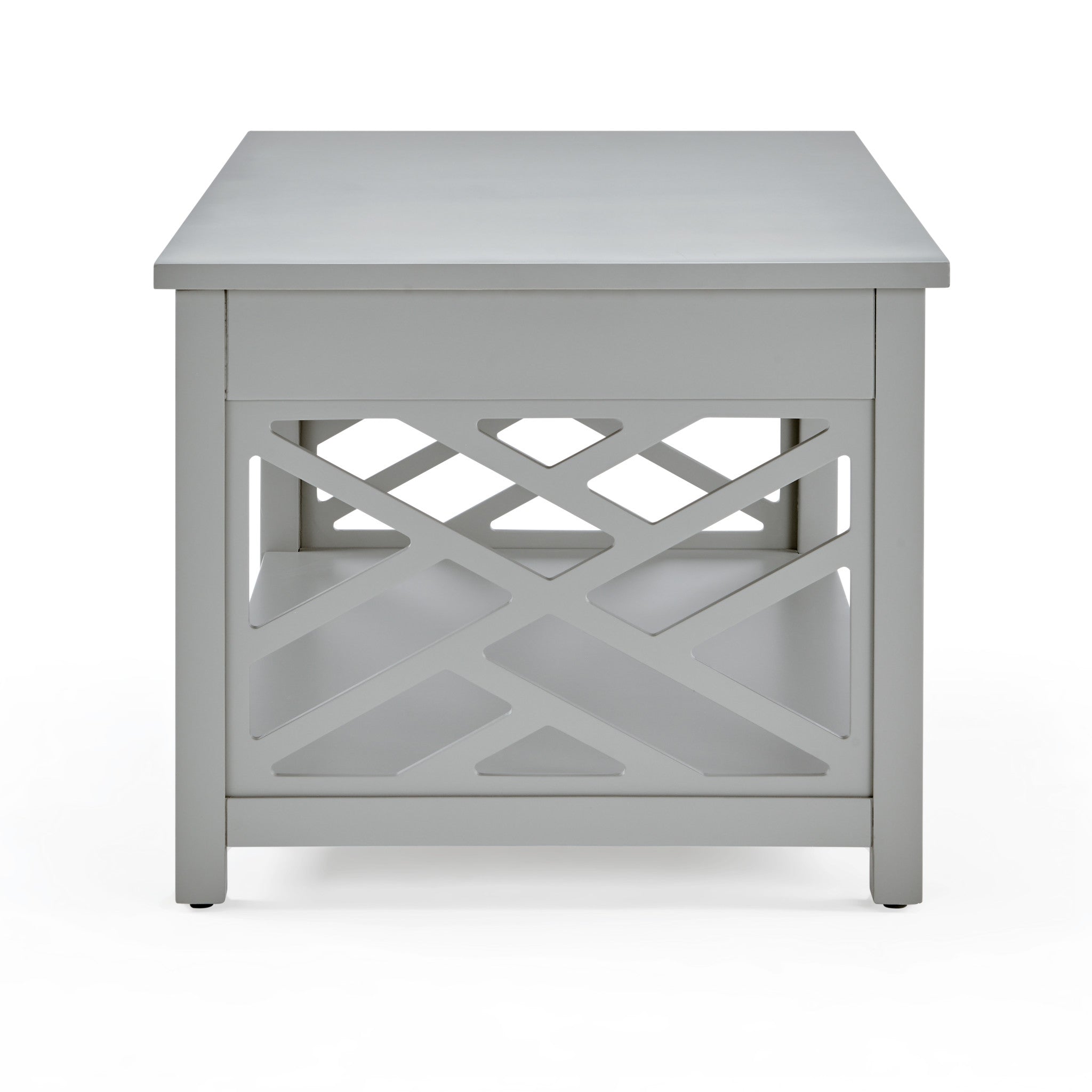 Coventry is a fresh, clean collection that is versatile in any space. The square pattern, open-detailing on each side is airy and offers a unique look for your décor. Each piece offers additional storage or display space with a shelf, drawer, or pull out tray shelf. In both dove gray and white, these pieces are the perfect compliment to your space.