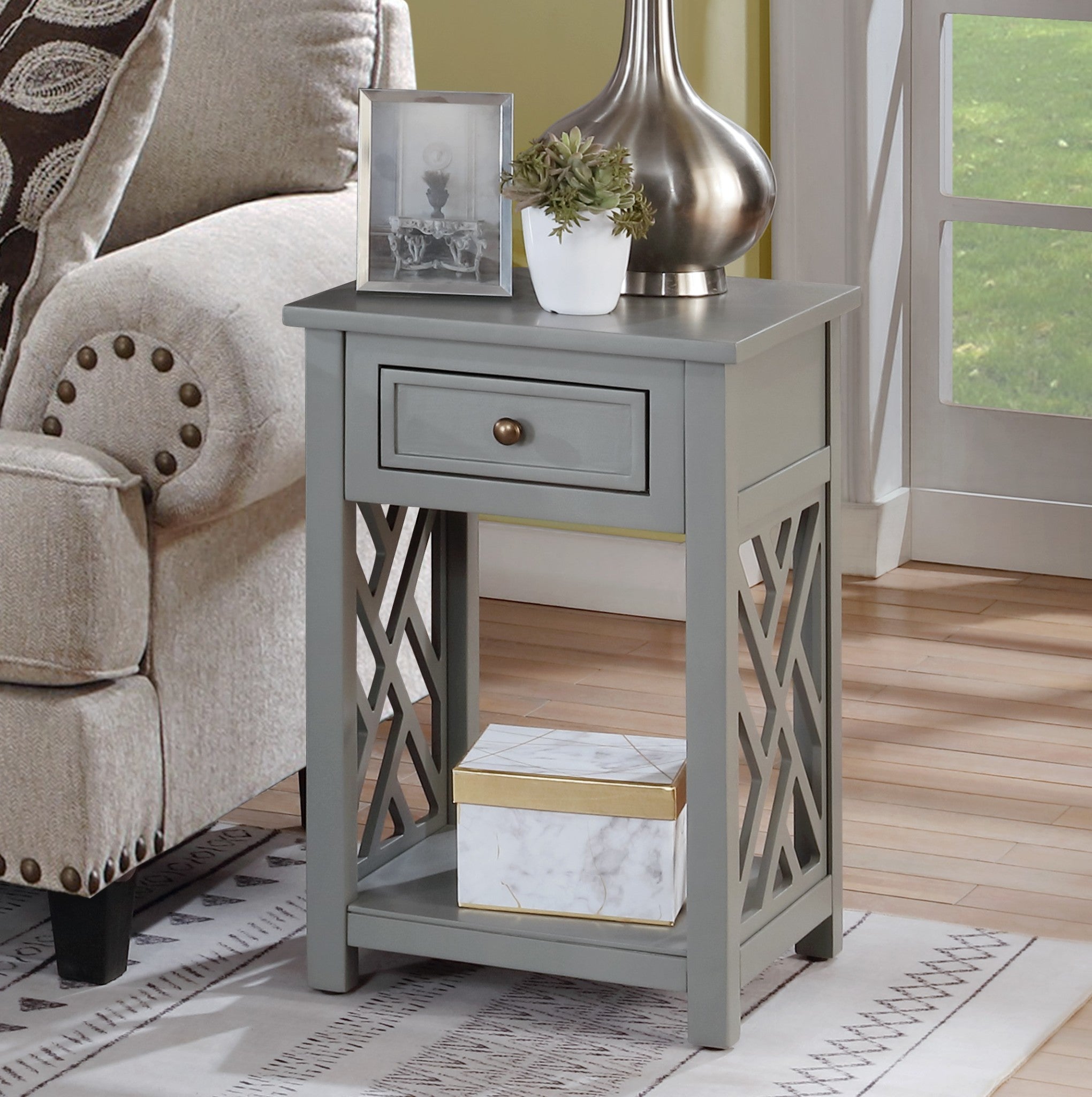 - [DOVE GRAY & WHITE] Coventry Wood End Table with Drawer and Shelf comes in two neutral colors, dove gray and white, that can easily be moved anywhere and be styled with just about any color palette