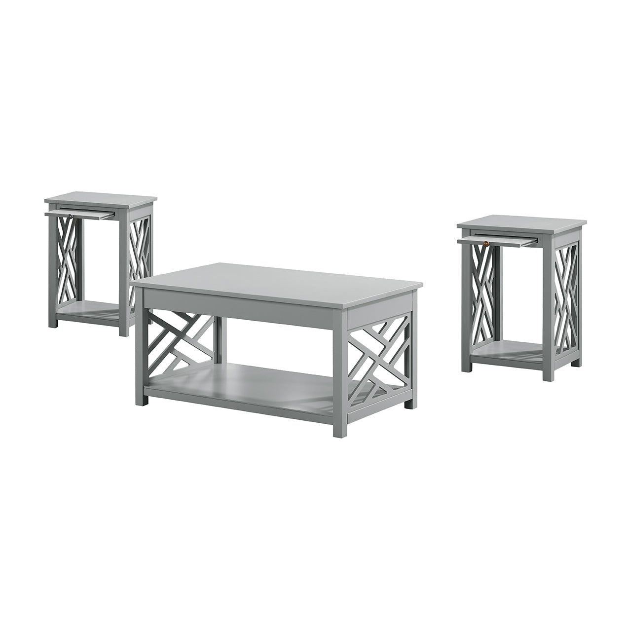 - [COMPLETE LIVING ROOM SET] Coffee table (36"W x 22"D) with tray shelf, end tables with 10"W tray shelves, and versatile storage space. This set balances practical storage with aesthetic appeal for a coordinated living room setup