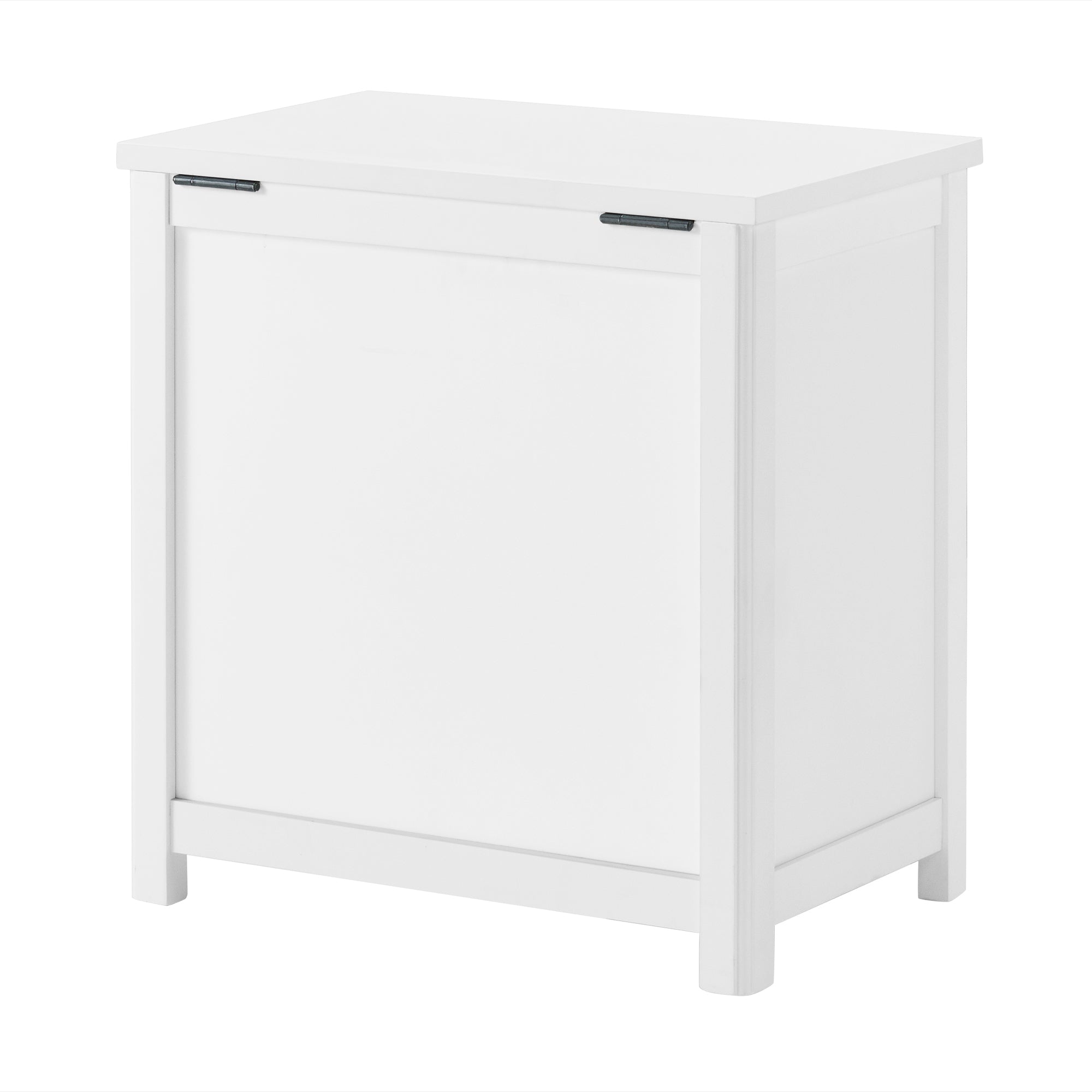 Bring style and function to your bathroom with this collection. Distinctive styling and gridwork details are designed to complement any décor. Wood construction with a painted white finish, this piece works with most aesthetics. This versatile piece can be used in a bedroom, bathroom, mudroom or laundry room. Features a hinged lid that lifts and stays open, so you can easily access toys, towels, and anything else stashed inside.