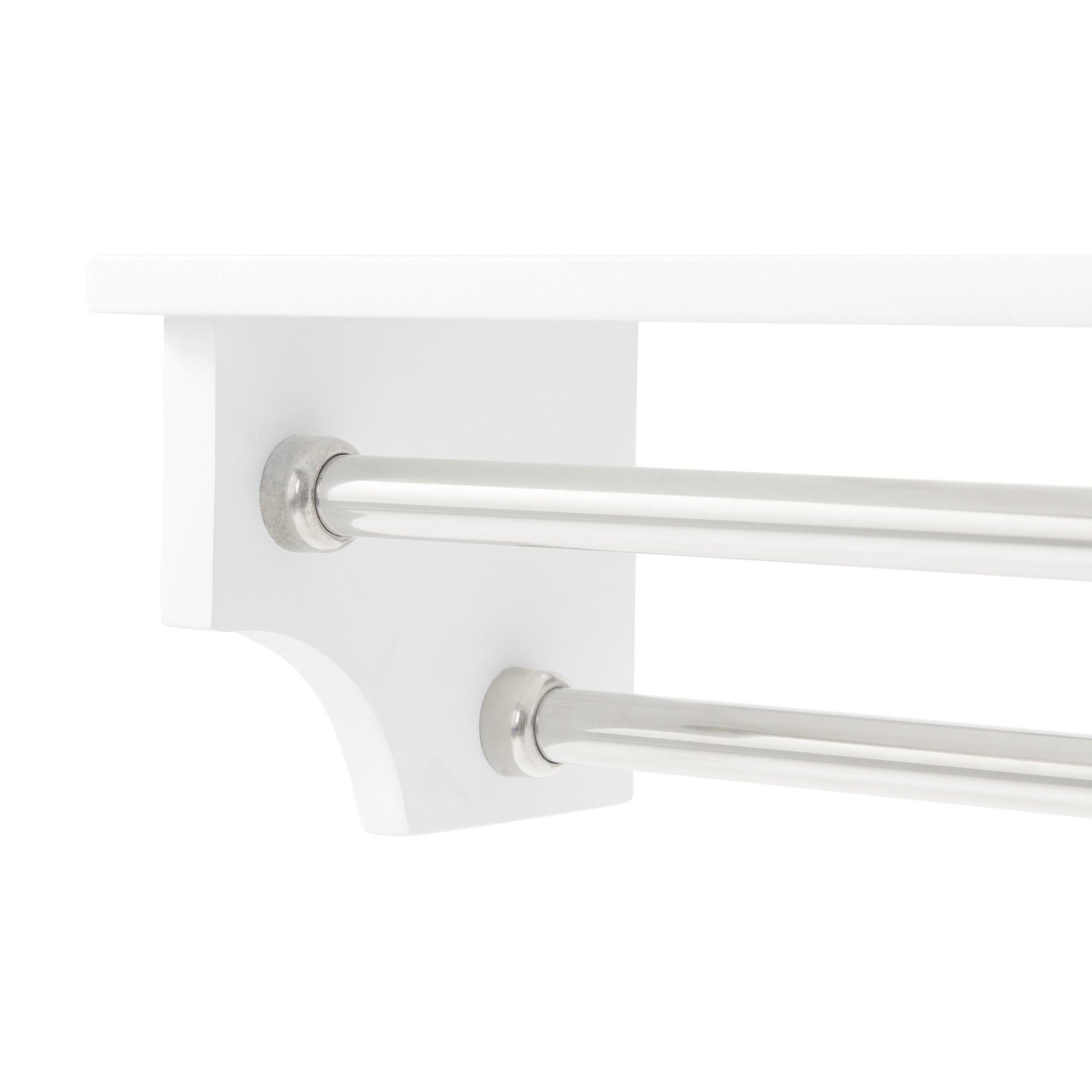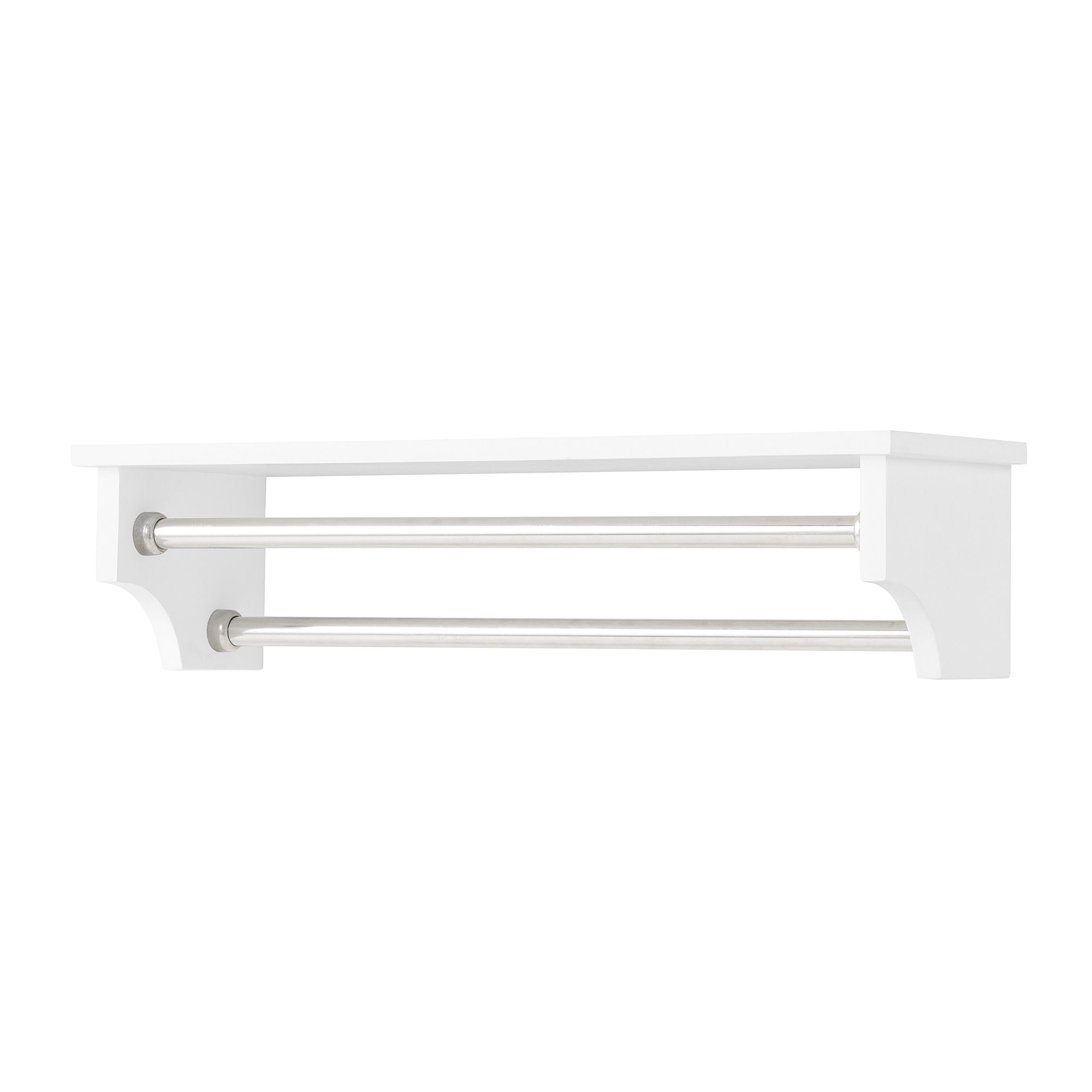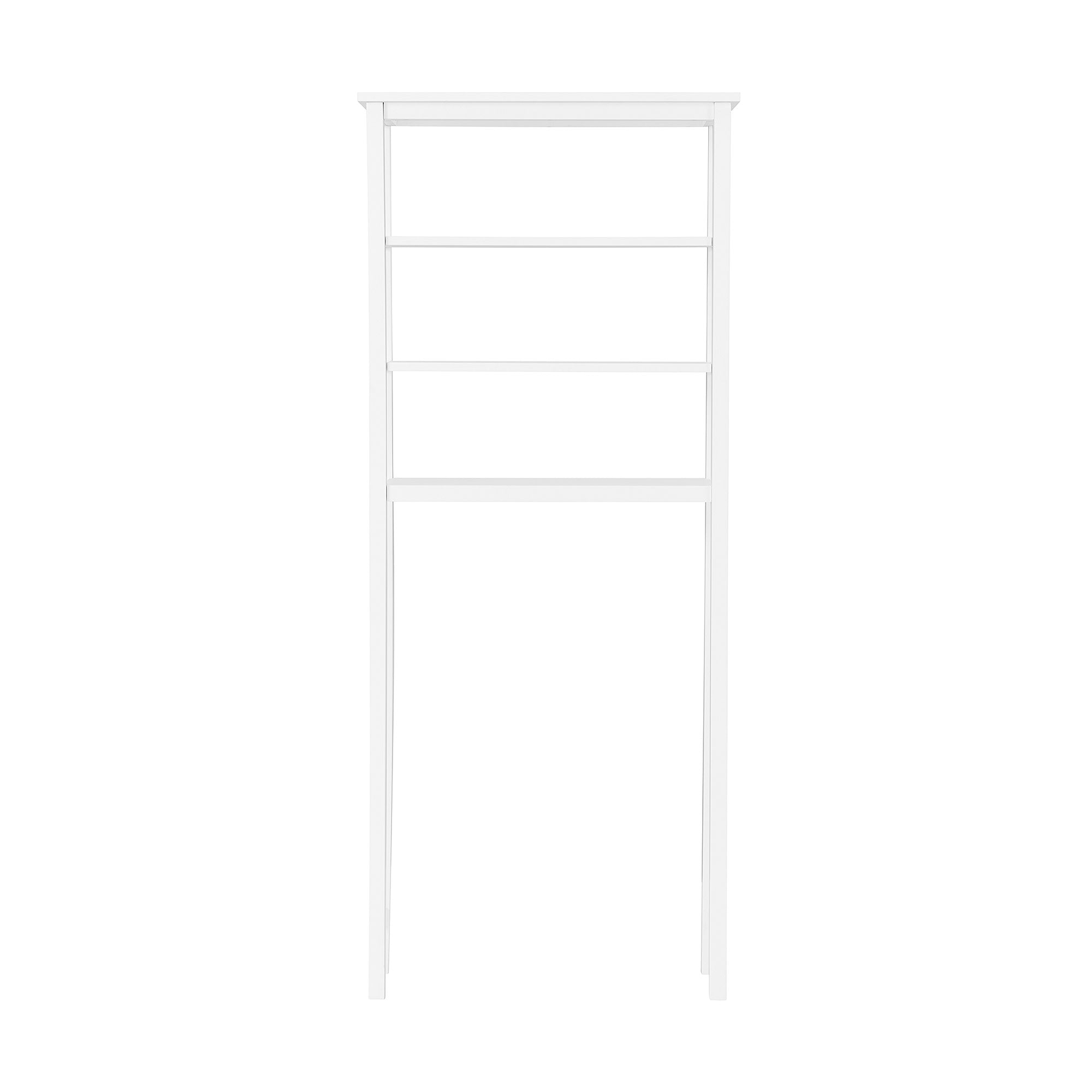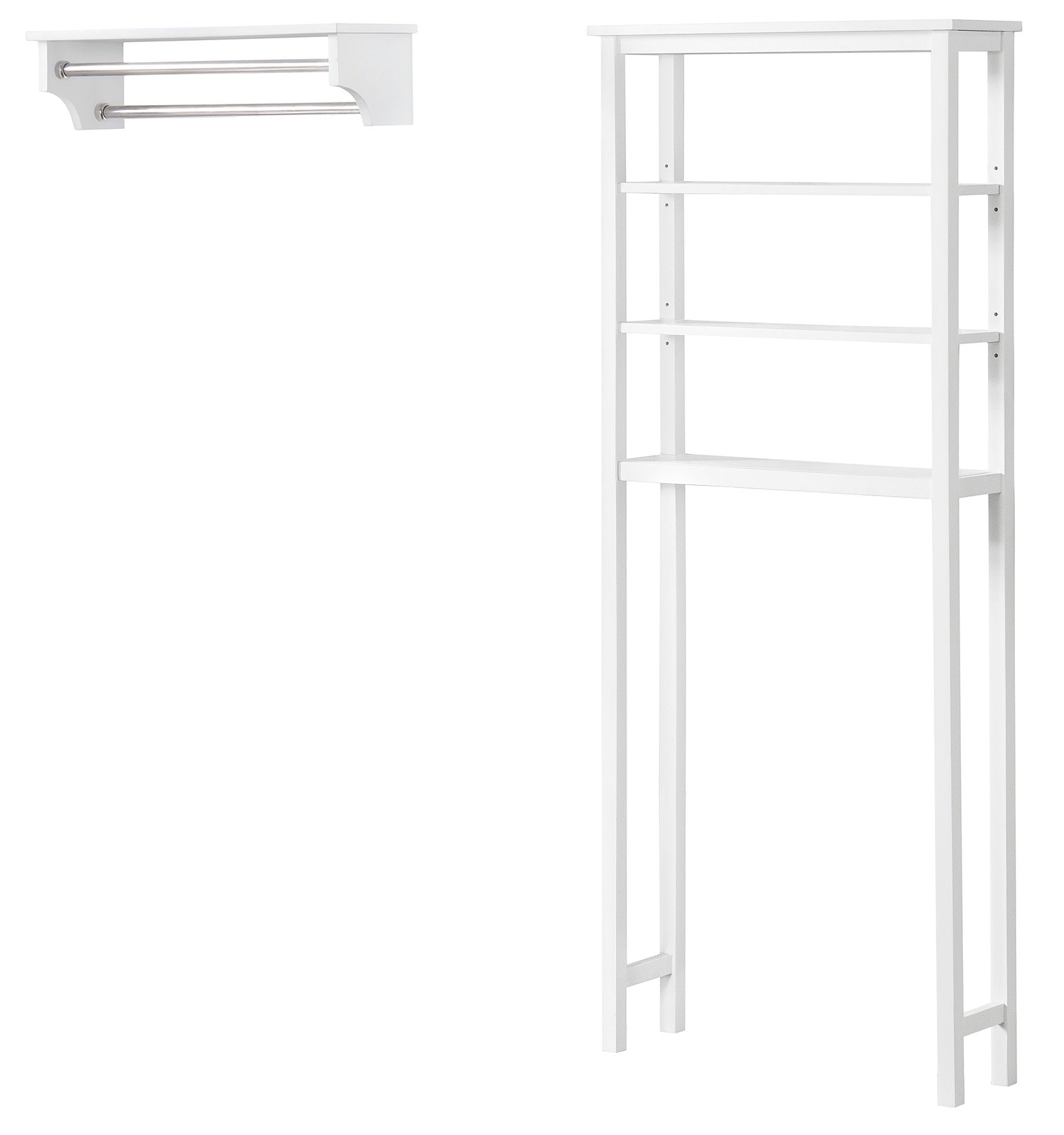 This collection brings space saving storage to your bathroom. The classic design compliments almost any bathroom décor. Wood construction with a white, painted finish, these pieces are designed for both style and functionality. A perfect space saver for your bathroom; over the toilet space saver organizer features three open shelves with plenty of space to keep toiletries, folded towels and decorative accessories. The 27"W shelf provides space for decor or bathroom accessories and features two towel rods. Bath collection is moisture resistant.