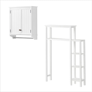 Dover Over Toilet Organizer with Side Shelving, Wall Mounted Bathroom Storage Cabinet with 2 Doors and Towel Rod