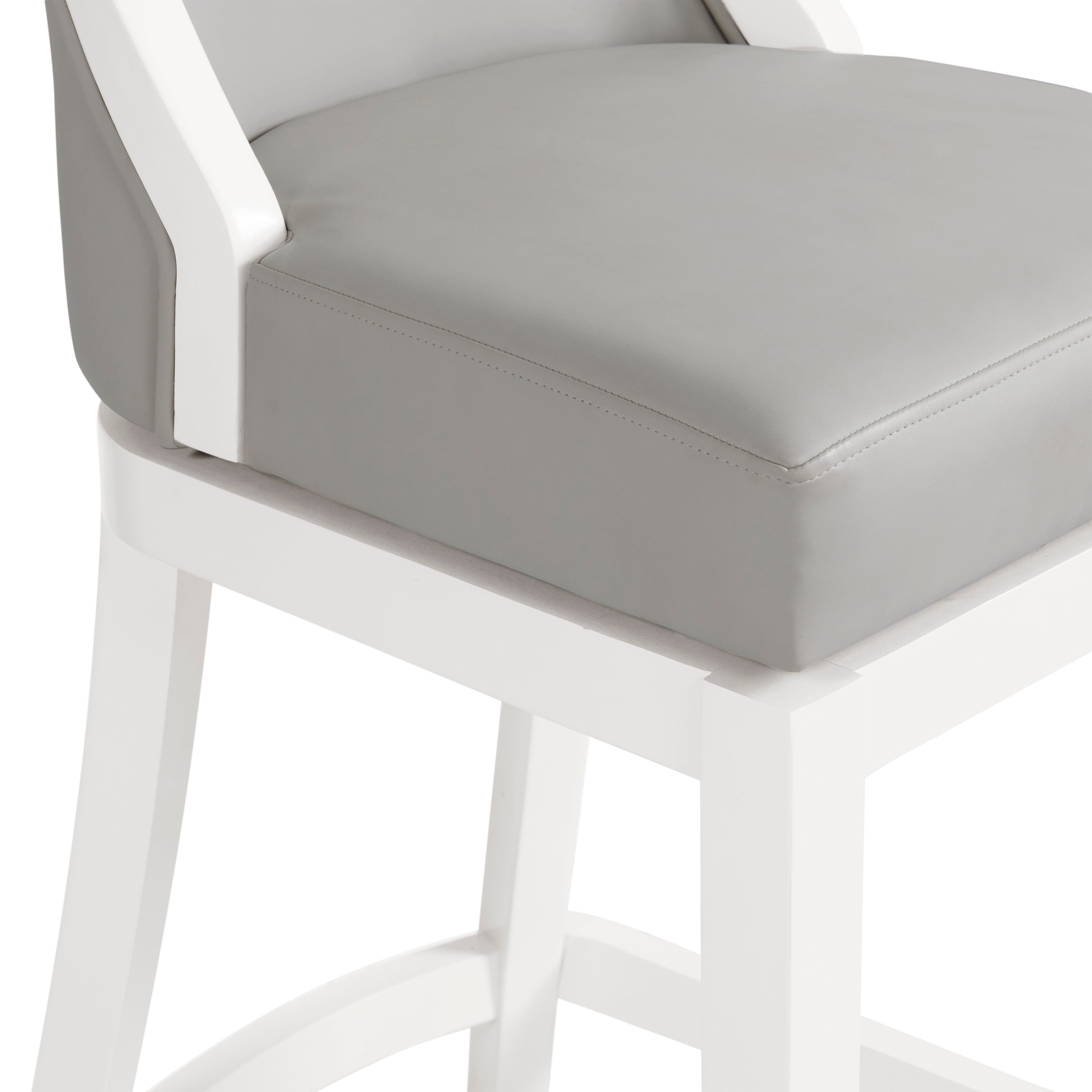 • MODERN AND VERSATILE DESIGN – Sleek white frame with a backrest and light gray leather-like upholstery complements modern kitchens, home bars, and islands, offering stylish seating without occupying extra space.