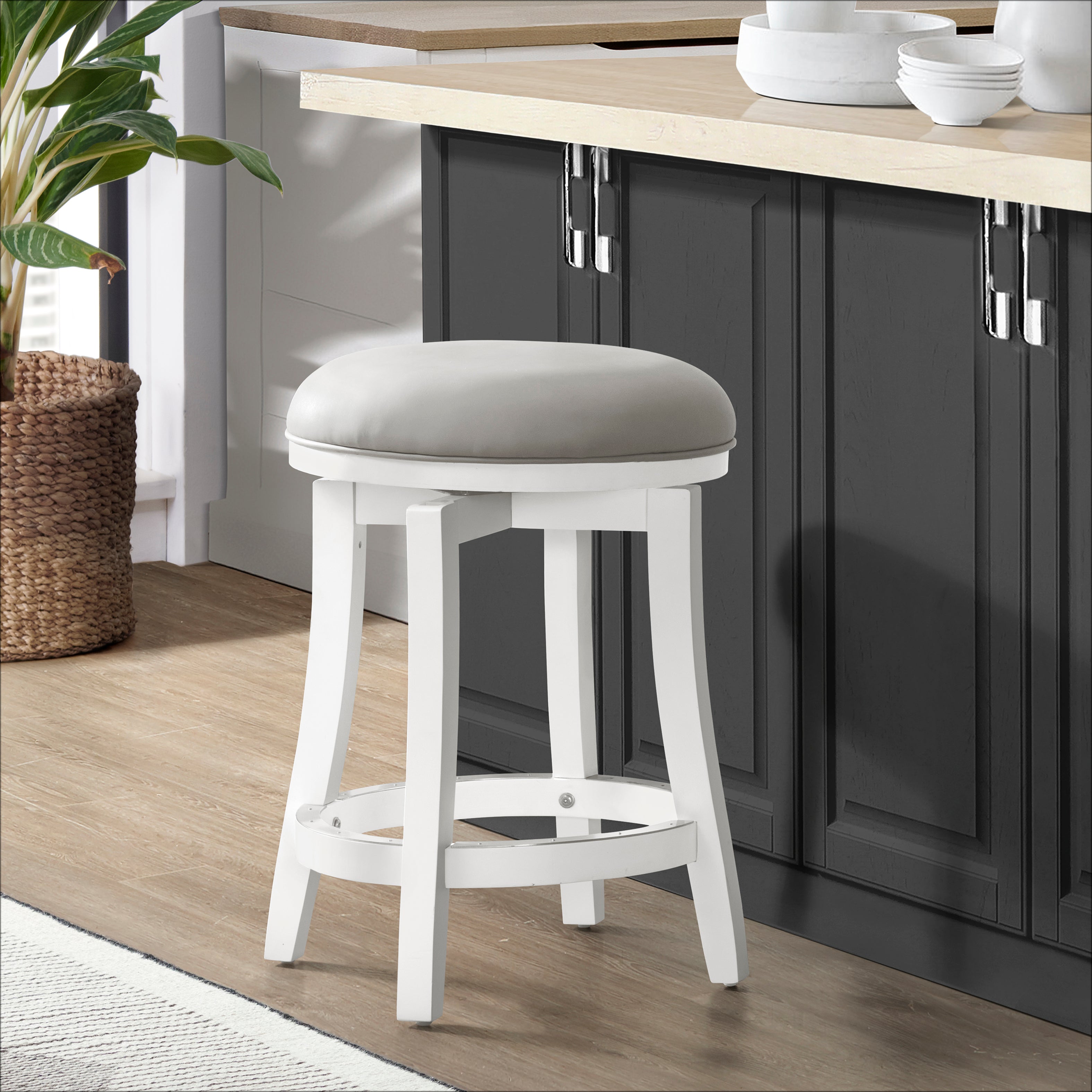 - COUNTER HEIGHT BARSTOOL – Enjoy long-lasting comfort with the Ellie Counter Height Swivel Stool, crafted from solid rubberwood with a leather-like upholstered padded seat. The 360° memory return swivel makes sitting and standing effortless while maintaining a clean, uniform look around your kitchen island.