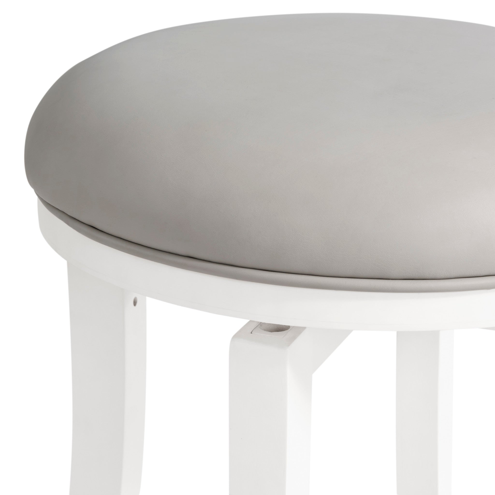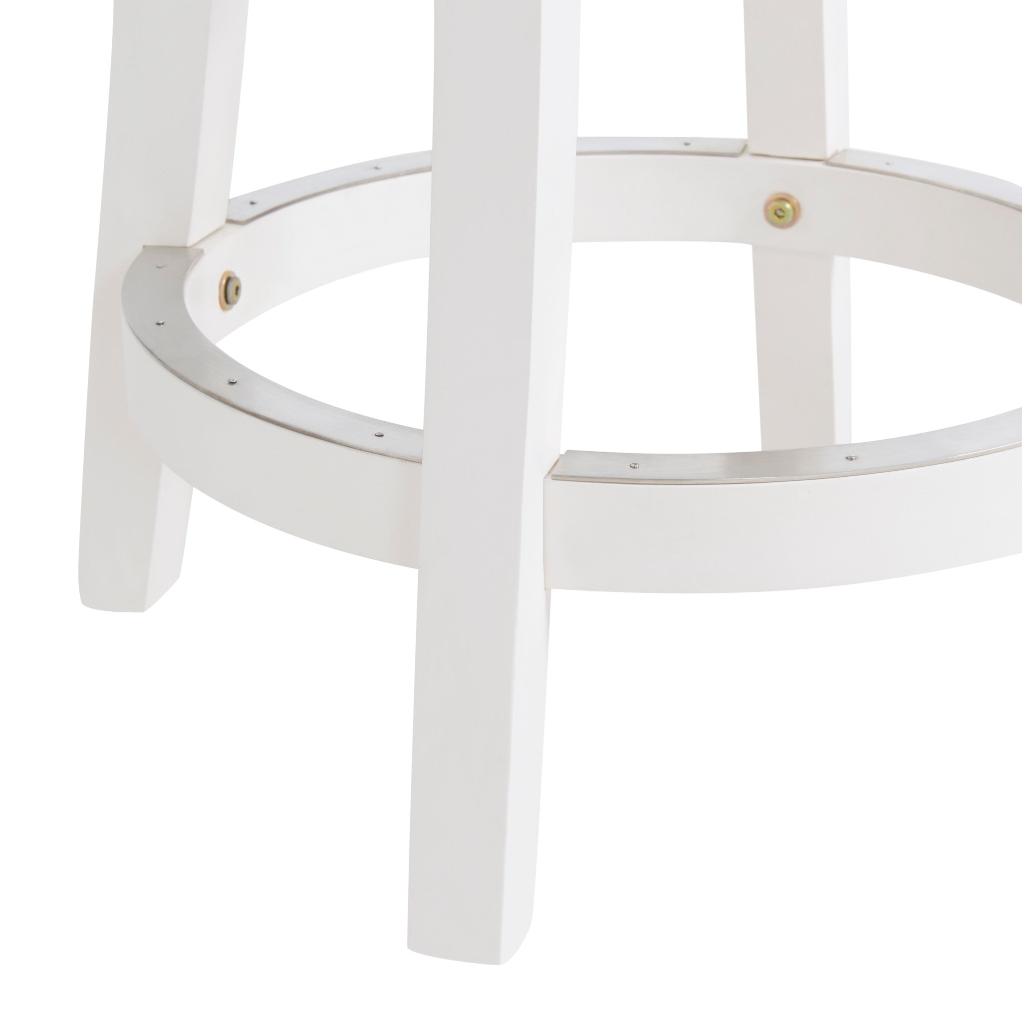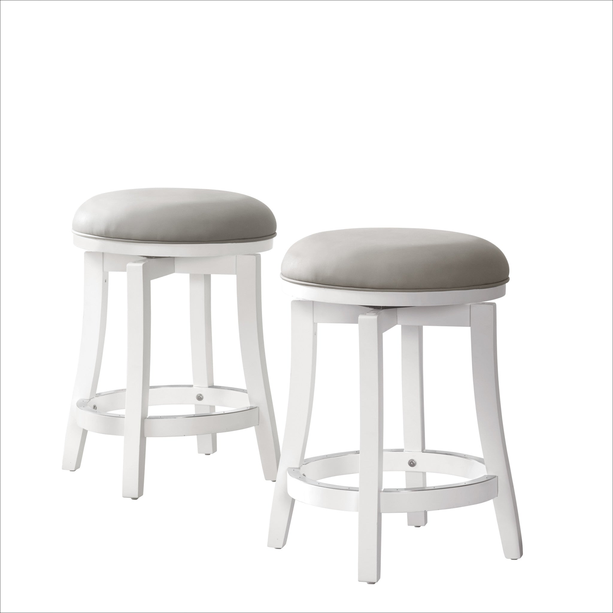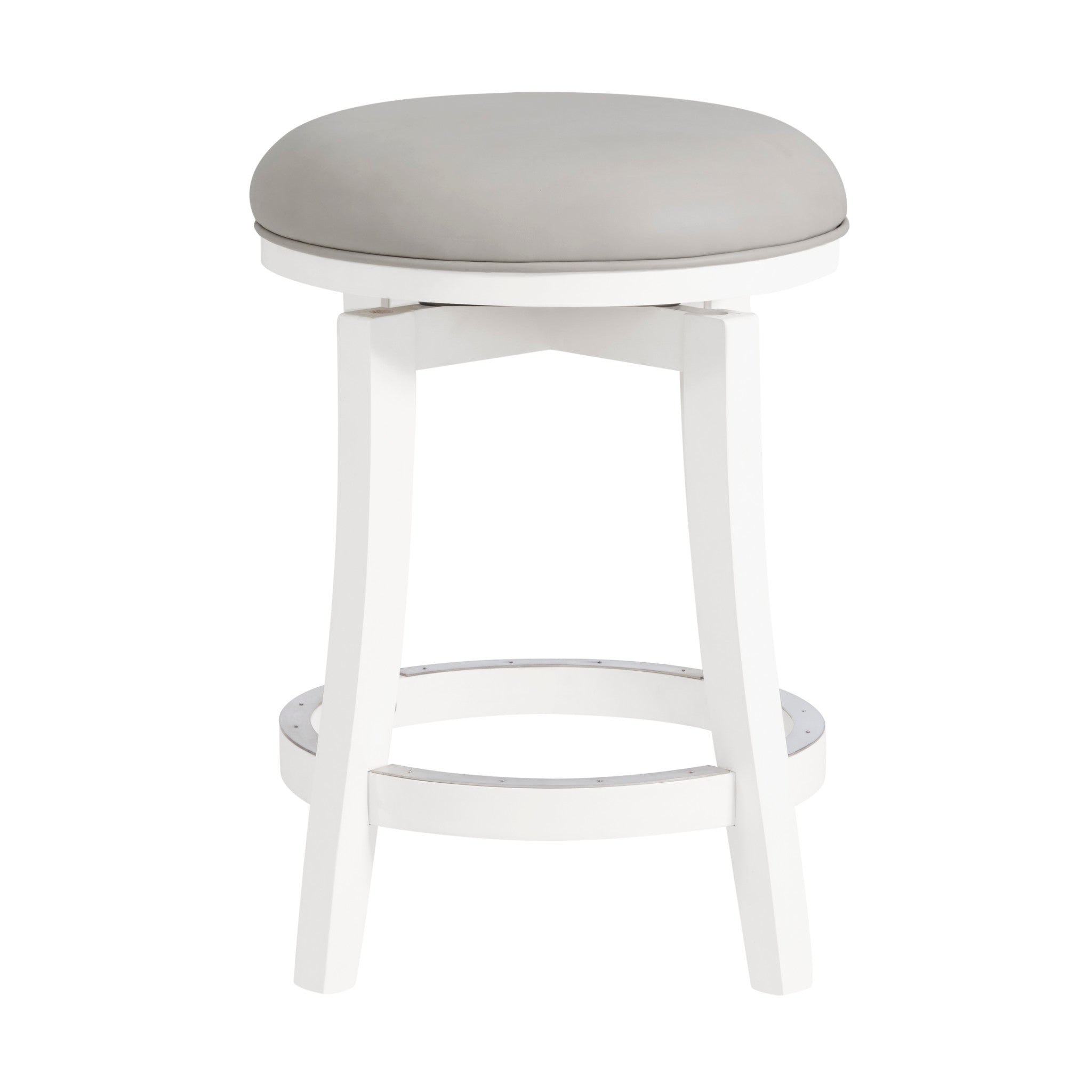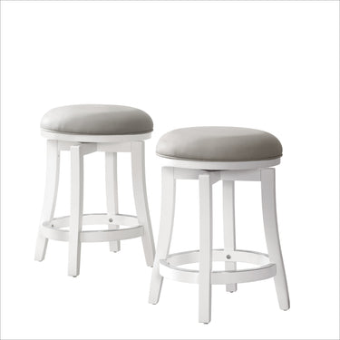 • SET OF 2 – Enjoy long-lasting comfort with the Ellie Counter Height Swivel Stool Set of 2, crafted from solid rubberwood with a light gray upholstered padded seat and white legs. The 360° steel memory return swivel allows effortless movement around your kitchen island.