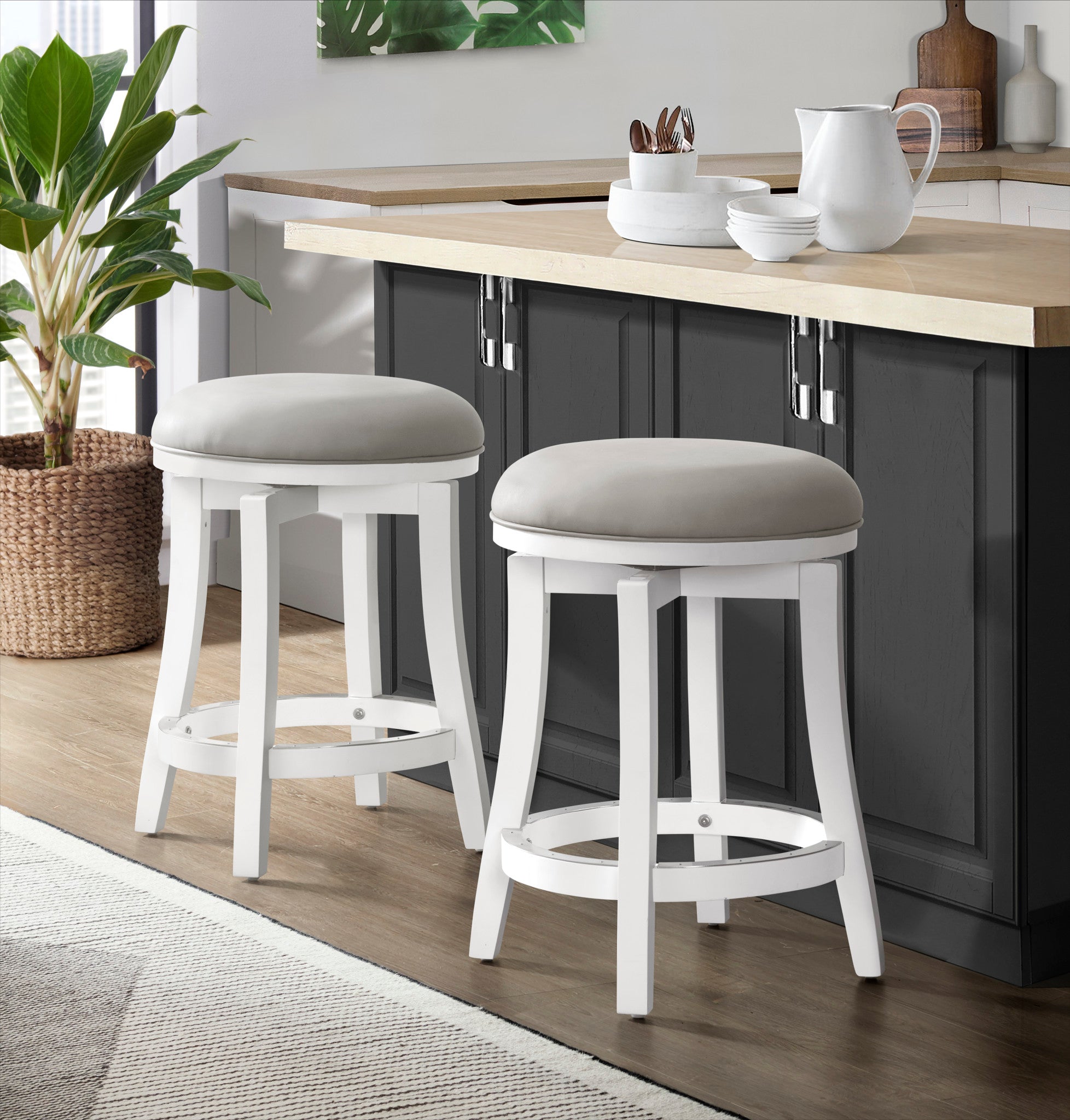 • SPACE-SAVING STYLE FOR MODERN KITCHENS – Each stool measures 21” W x 21” D x 25” H, making it perfect for compact counter spaces. The light gray seat with white legs complements farmhouse, contemporary, and transitional décor while sliding neatly under countertops.