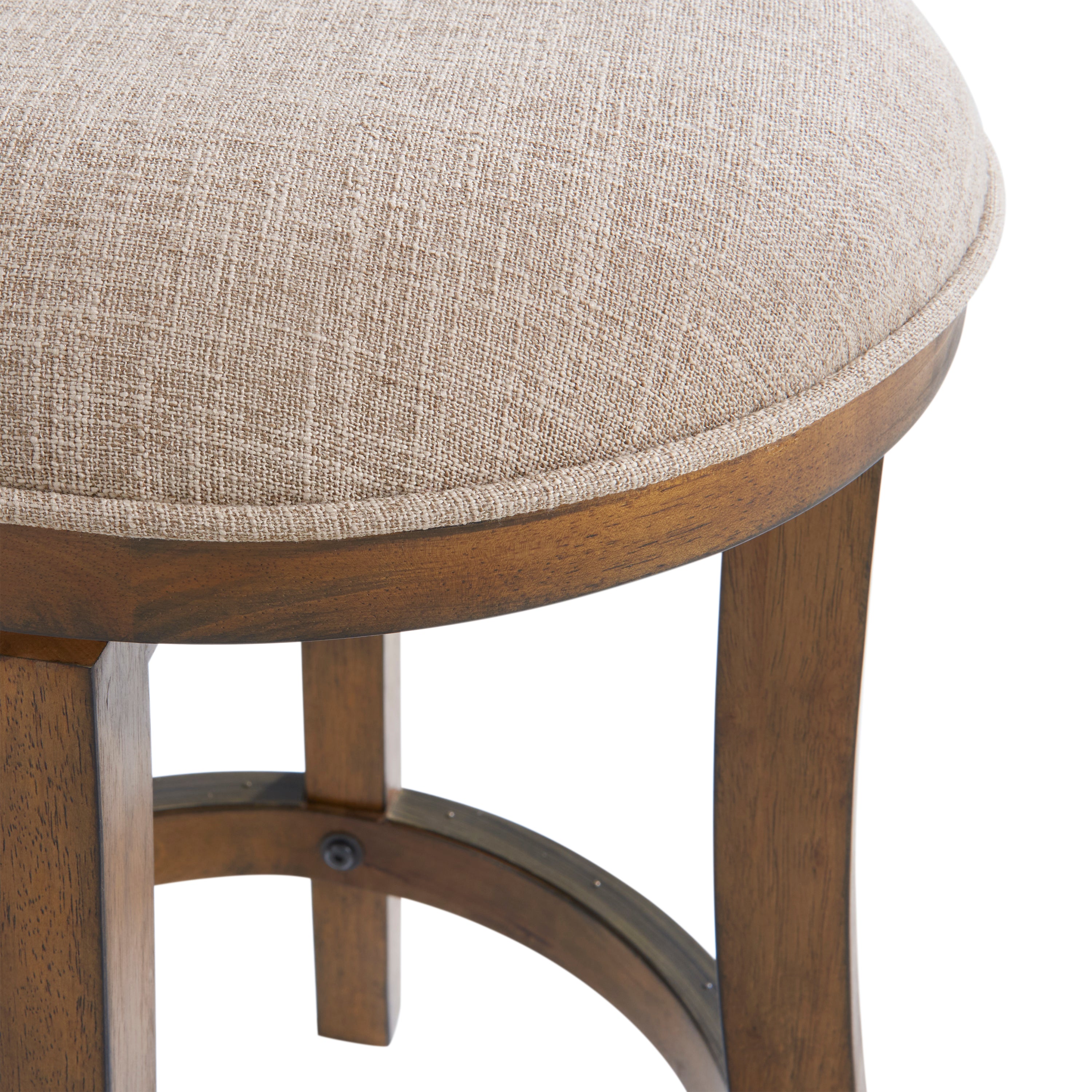 Bring a timeless upgrade for your kitchen or bar area with this counter height stool. This stool has a classic look with an upholstered and padded seat and back perched on a rubberwood frame. This stool features a steel memory return-swivel mechanism, bringing your stool to its original position after removing static weight. The footrest gives you stability in addition to a durable metal kick plate protecting the top of the front-facing footrest from scuffs and scratches. Place this stool in your kitchen, living room or entertaining space to provide extra seating for your guests.