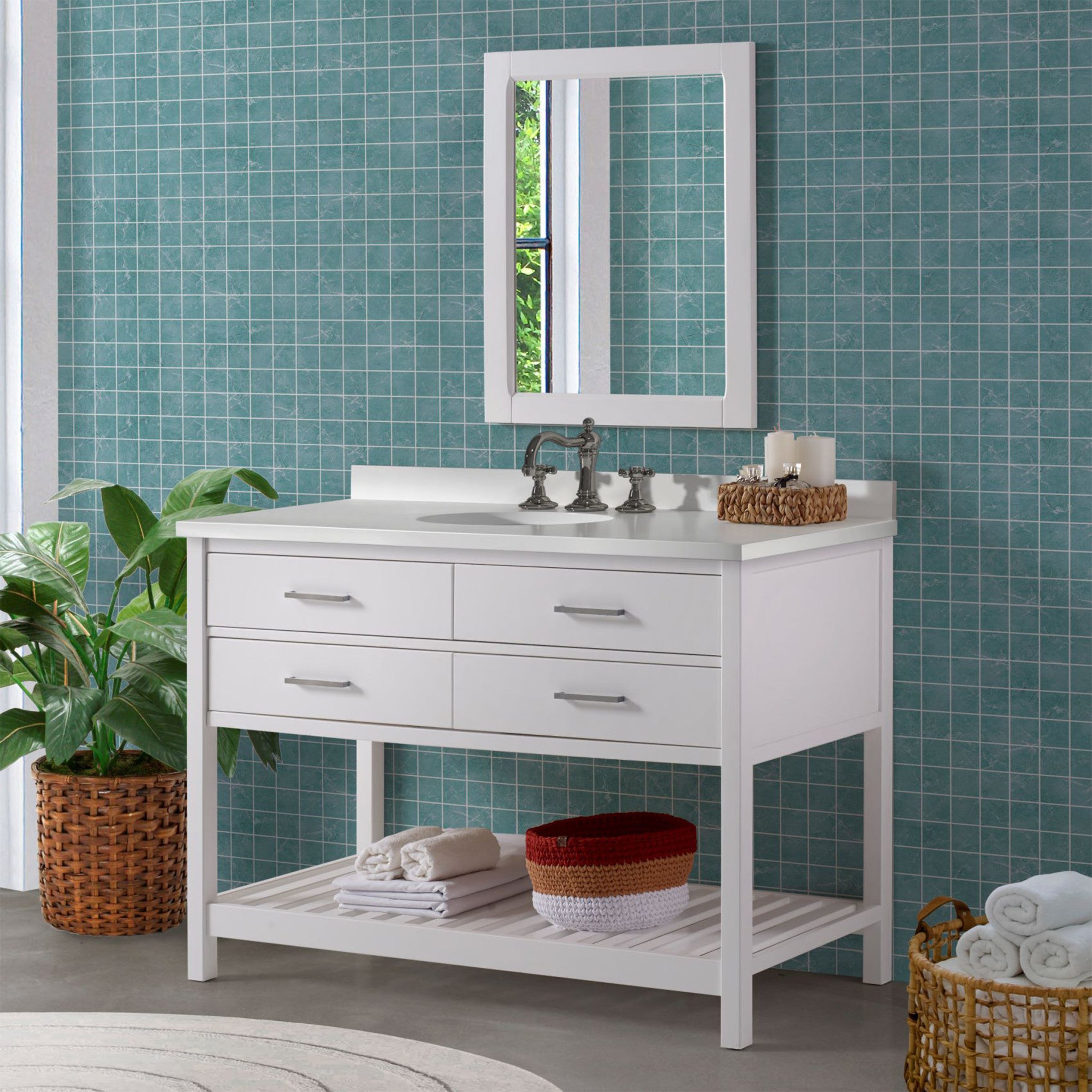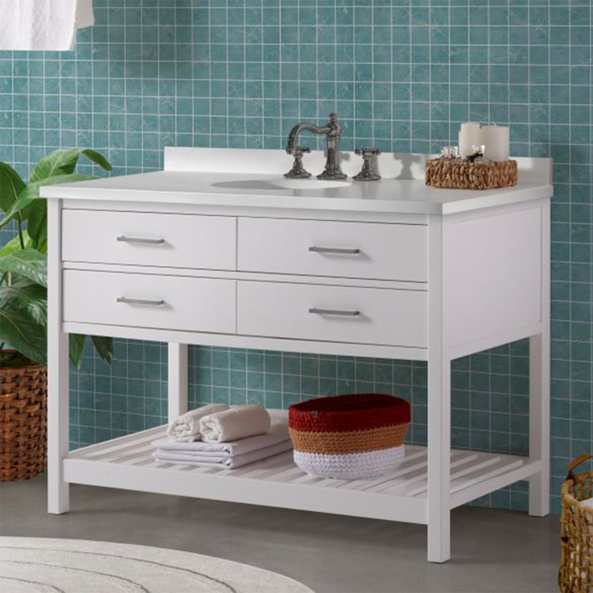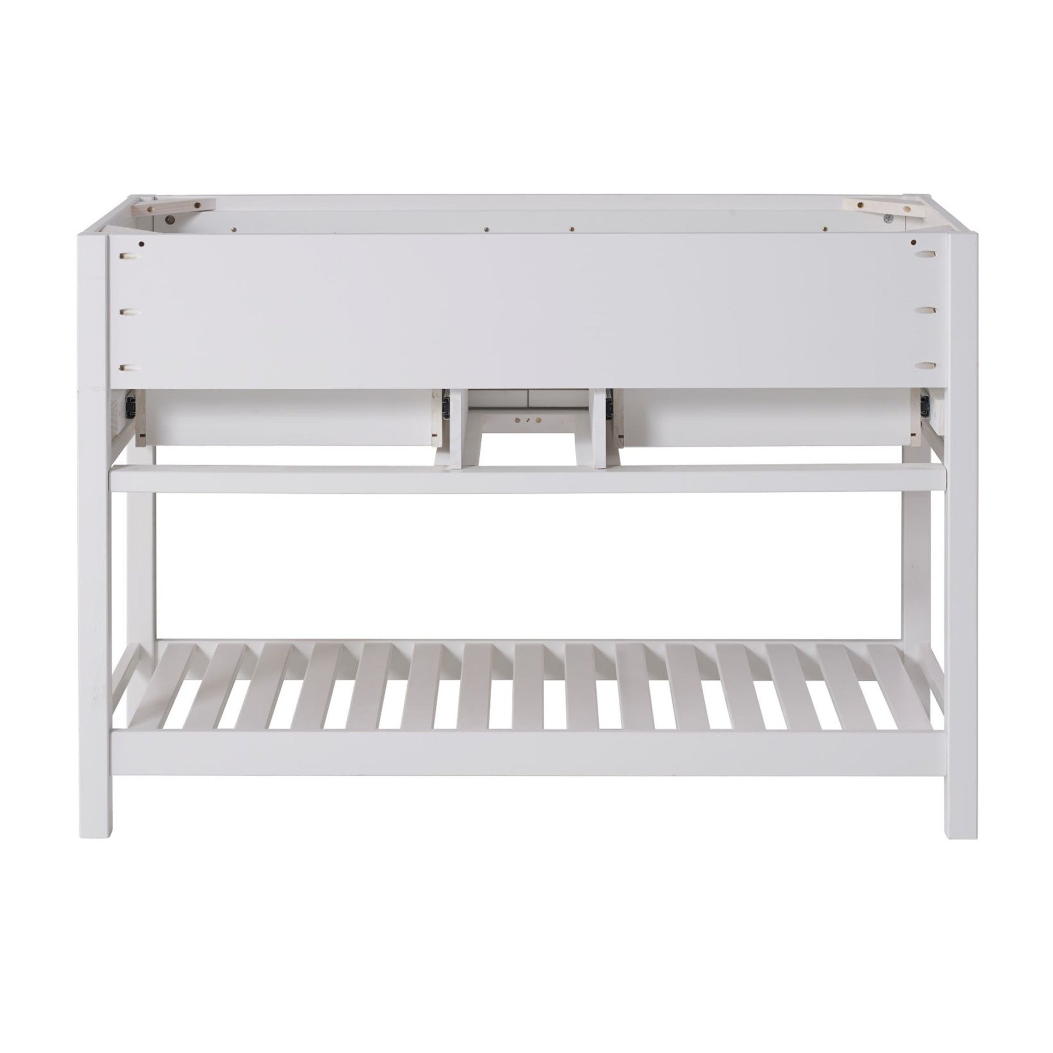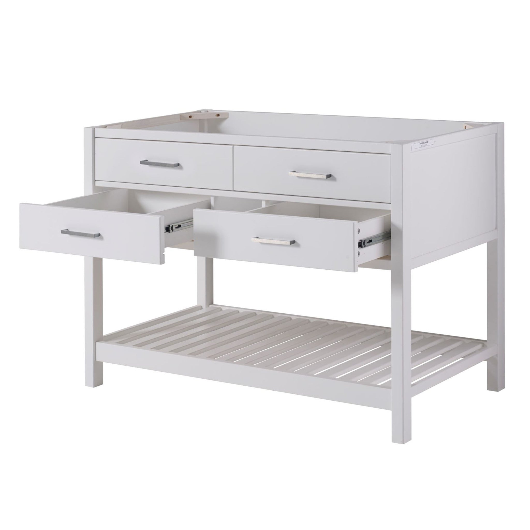 • [EFFICIENT STORAGE SOLUTION] Elevate your bathroom with the Harrison 48" W Vanity Cabinet; features spacious drawers and a lower shelf, crafted from durable solid pine for long-lasting appeal