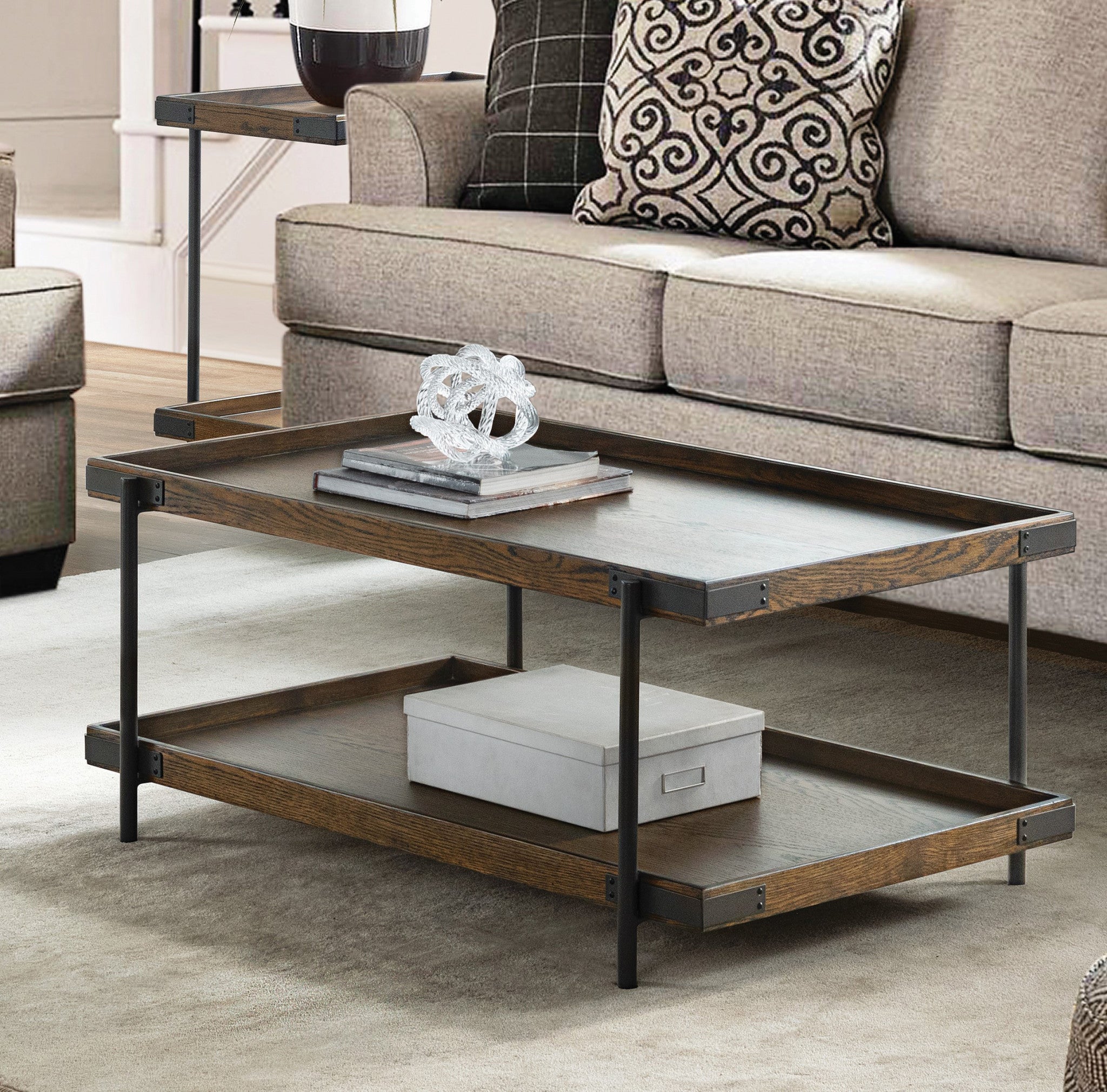 A perfect blend of rustic and industrial style, this beautiful collection will blend seamlessly in your living space. Featuring solid wood tray tops that are fixed in place with metal accents and metal legs. Mix and match to achieve your desired look. This gorgeous coffee table with shelf will be a perfect accent next to your sofa