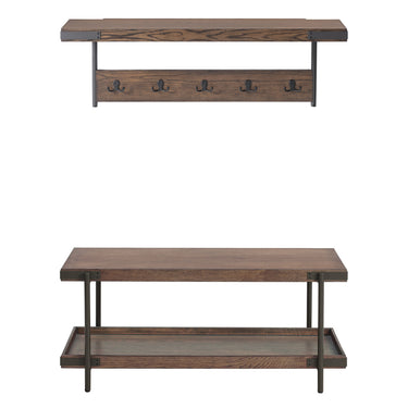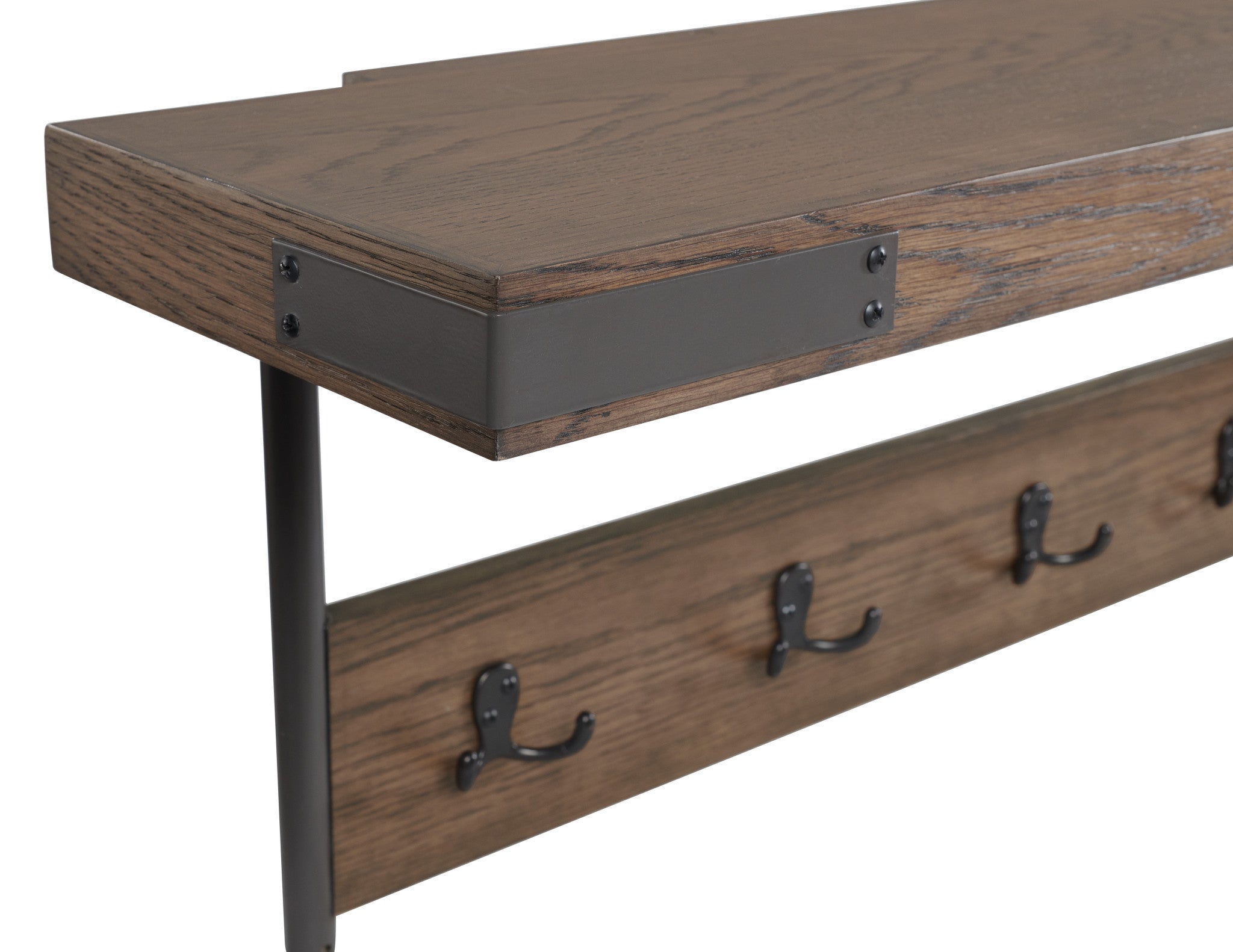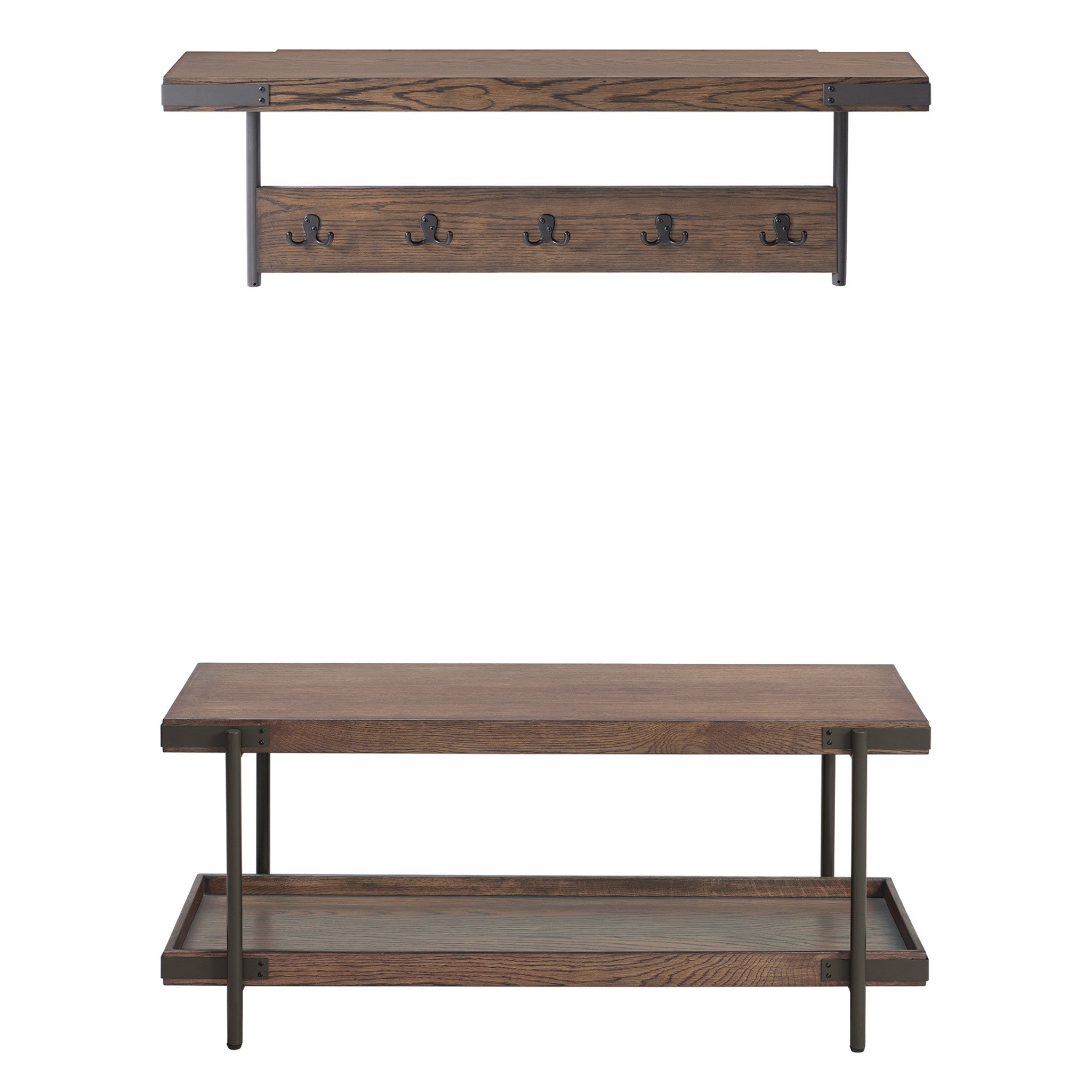 Kyra 42"L Oak and Metal Coat Hook with Shelf and Bench Set