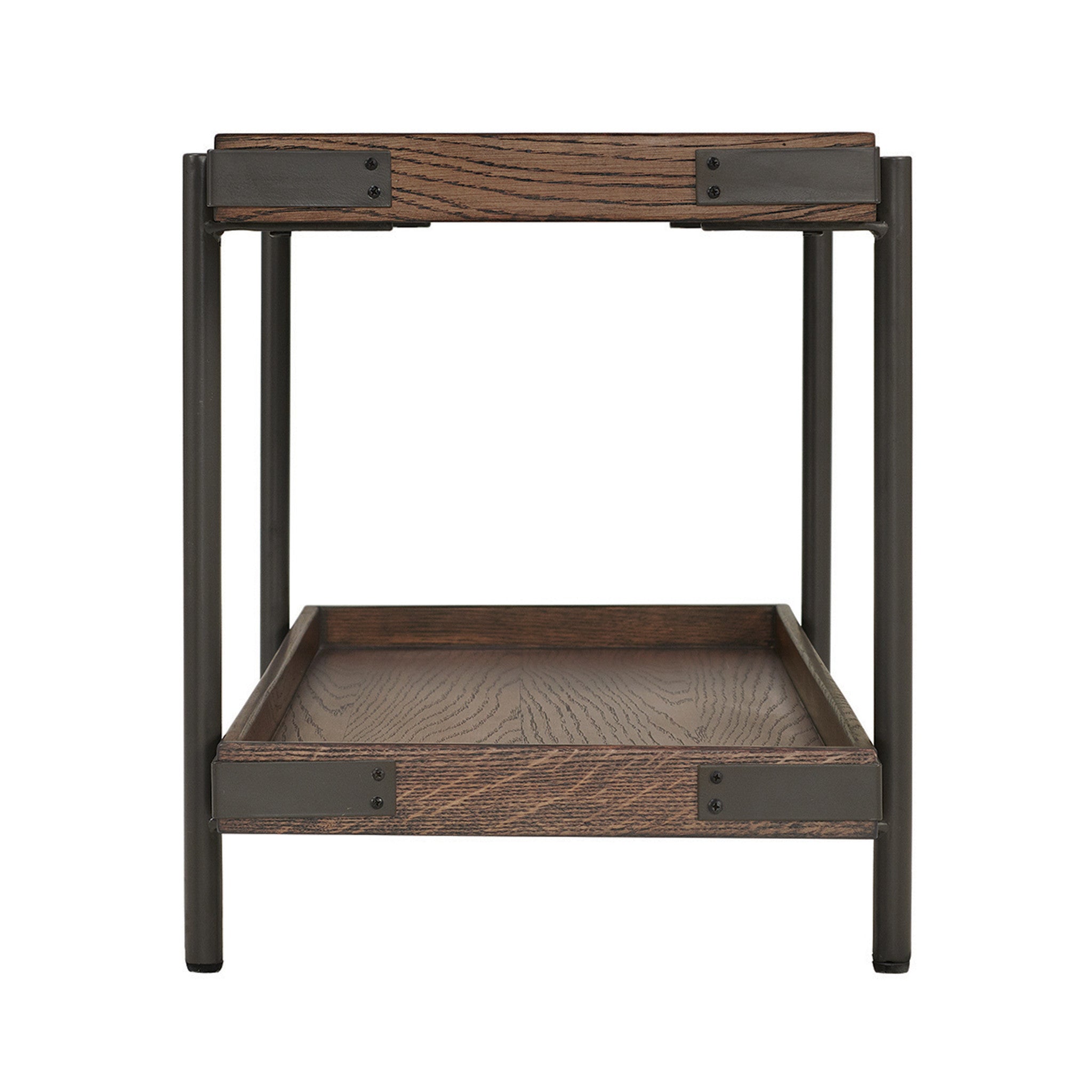 A perfect blend of rustic and industrial style, this beautiful collection will blend seamlessly in your living space. Featuring solid wood tray tops that are fixed in place with metal accents and metal legs. These pieces will be perfect for your mudroom, laundry room or entryway. Mix and match to achieve your desired look.