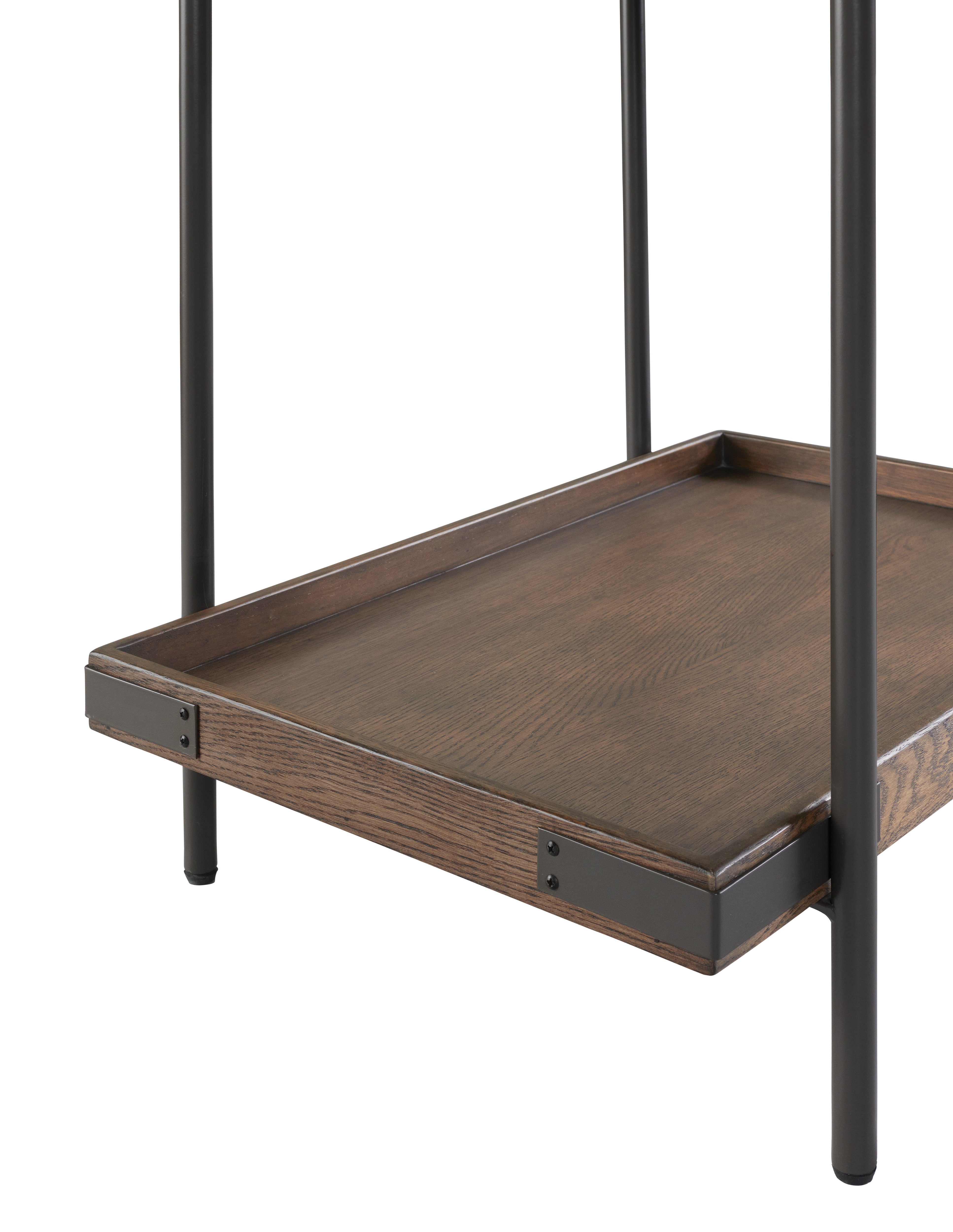 A perfect blend of rustic and industrial style, this beautiful collection will blend seamlessly in your living space. The side table with shelf is a perfect spot for your favorite lamp, books, magazines, or knick knacks. Featuring solid wood tray tops that are fixed in place with metal accents and metal legs. Mix and match to achieve your desired look.