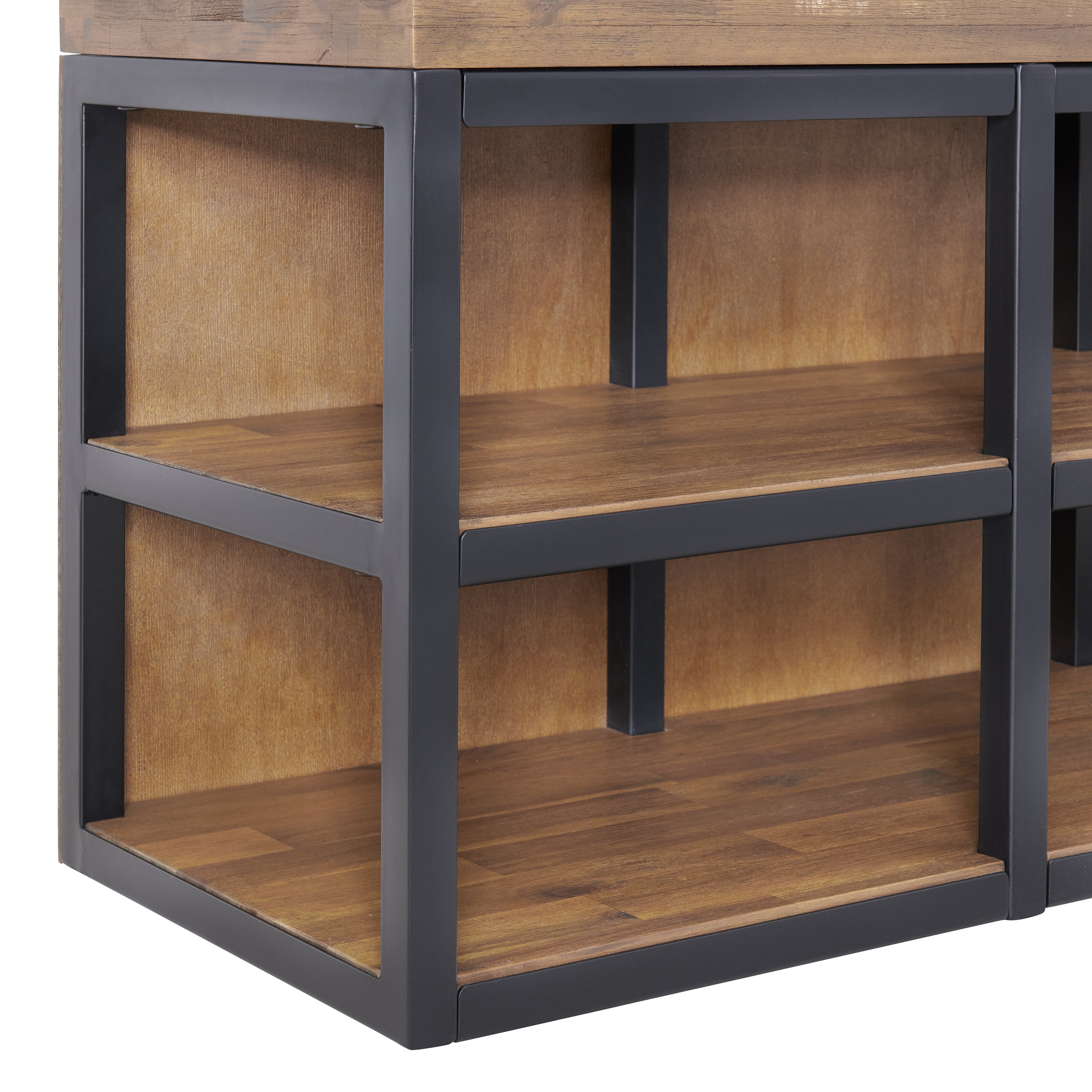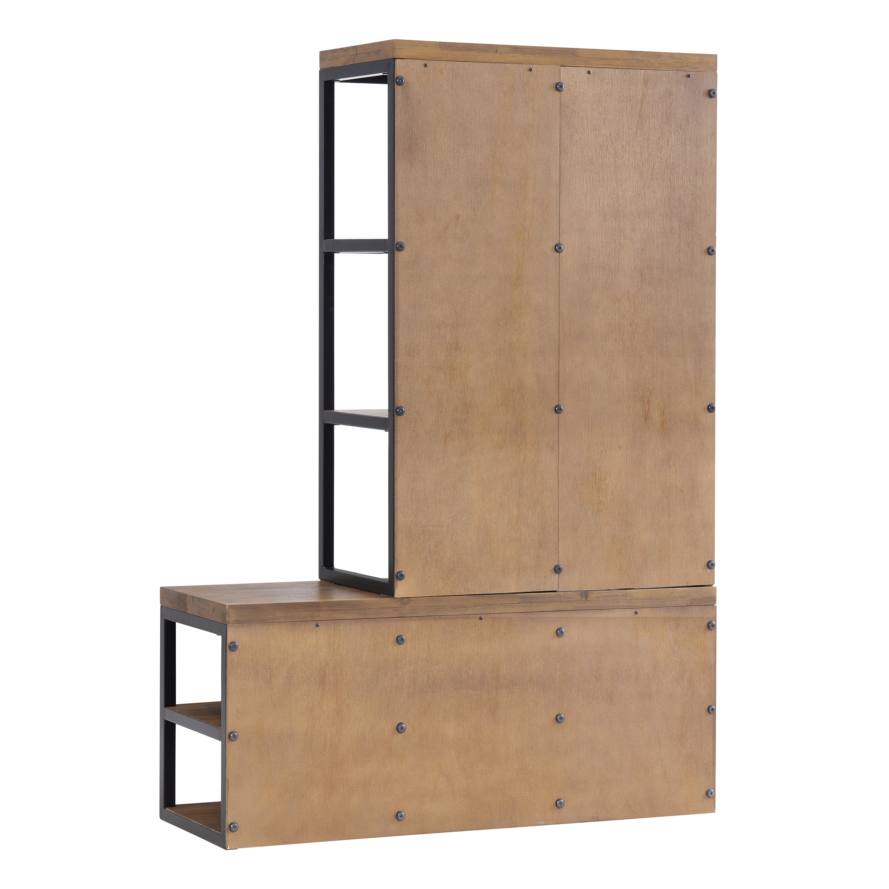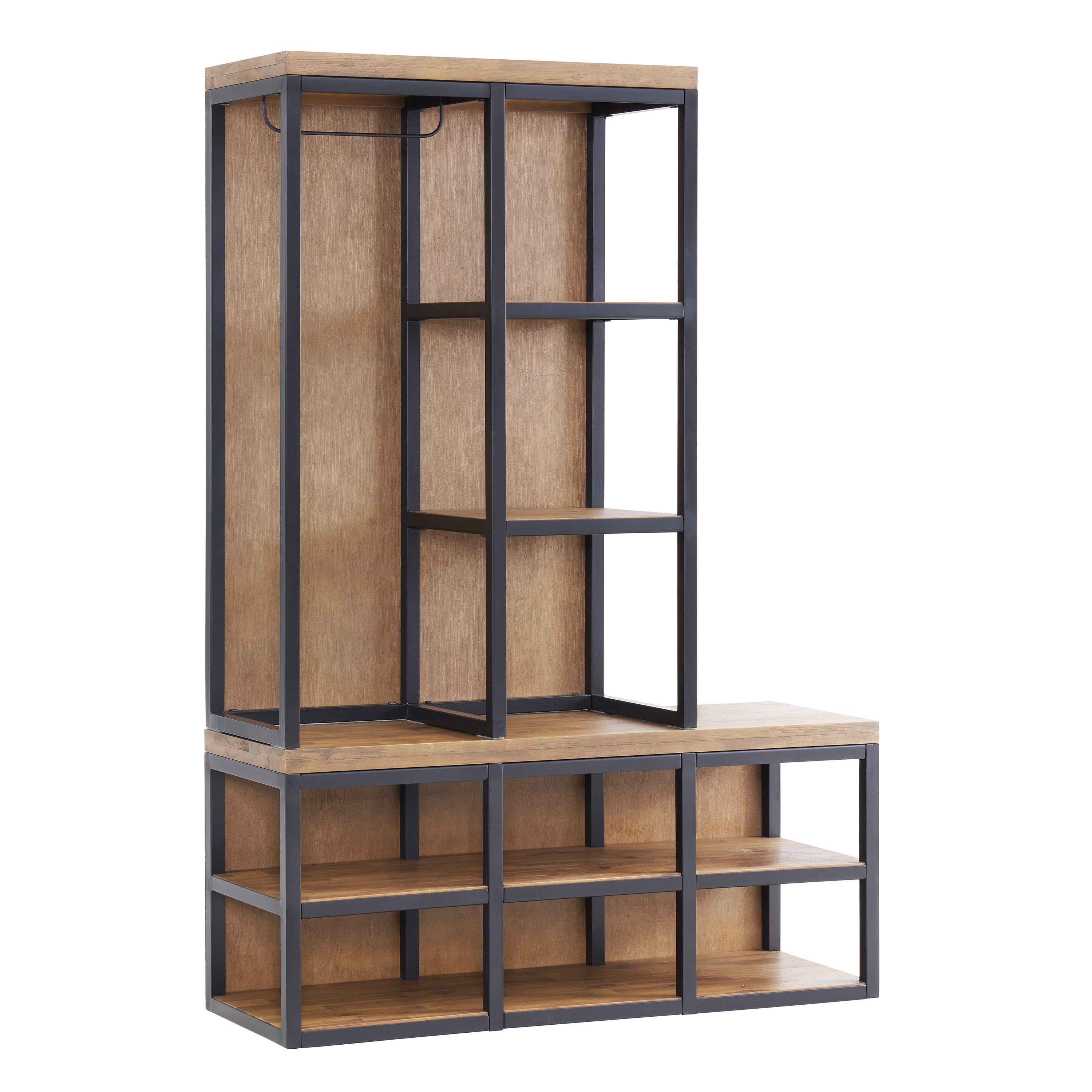 Keep your entryway or hallway organized with this hall tree with bench. The hall tree with bench is both beautiful and functional, providing ample storage and style for your home's entryway or hallway. Made from acacia wood and metal ,the mix of materials gives this hall tree an industrial, modern look. Features 3 side shelves for storing backpacks, shoes, and more colorful baskets or a plant add a nice decorative touch. Includes a bench for you to comfortably sit and take off your shoes and shelves underneath for storing them.