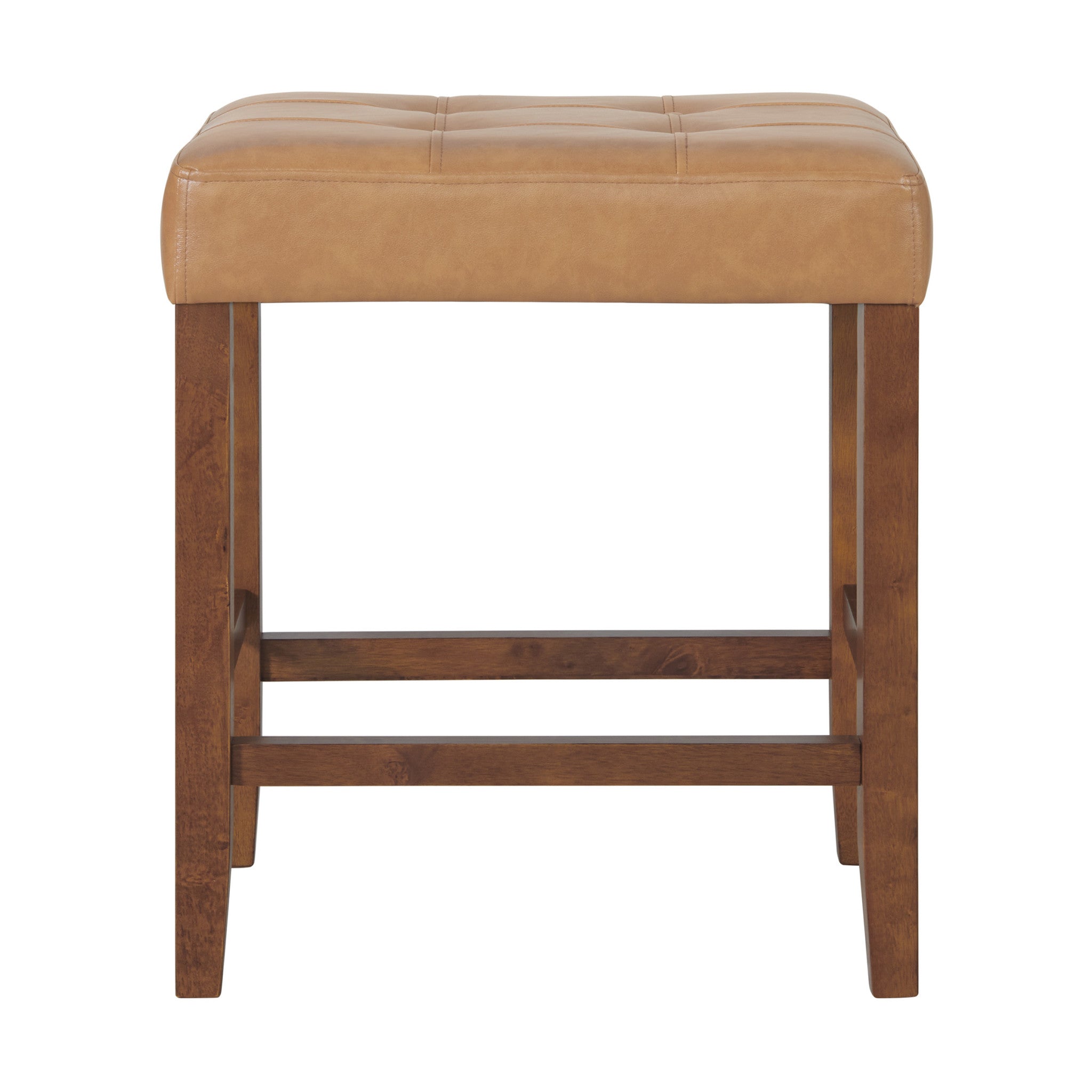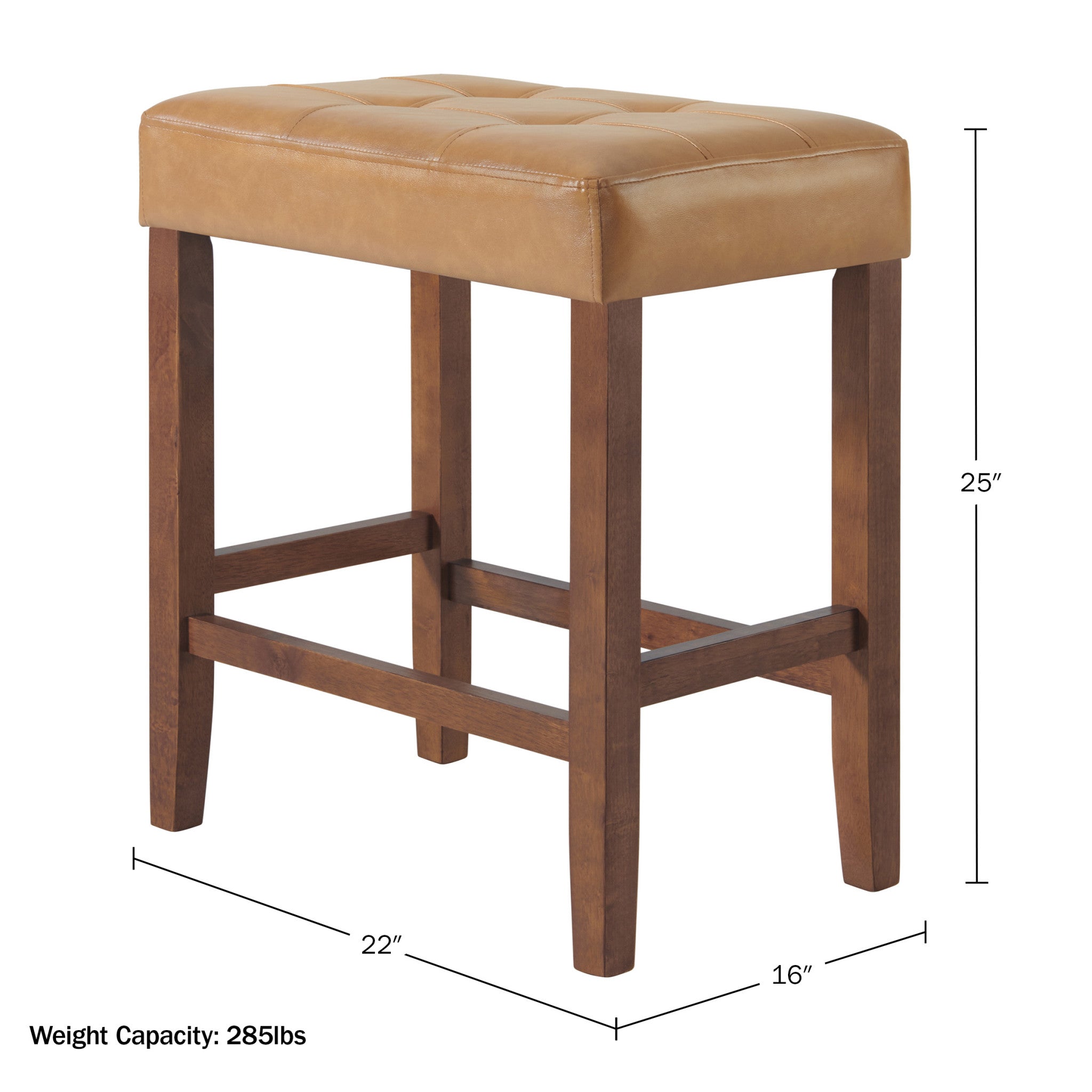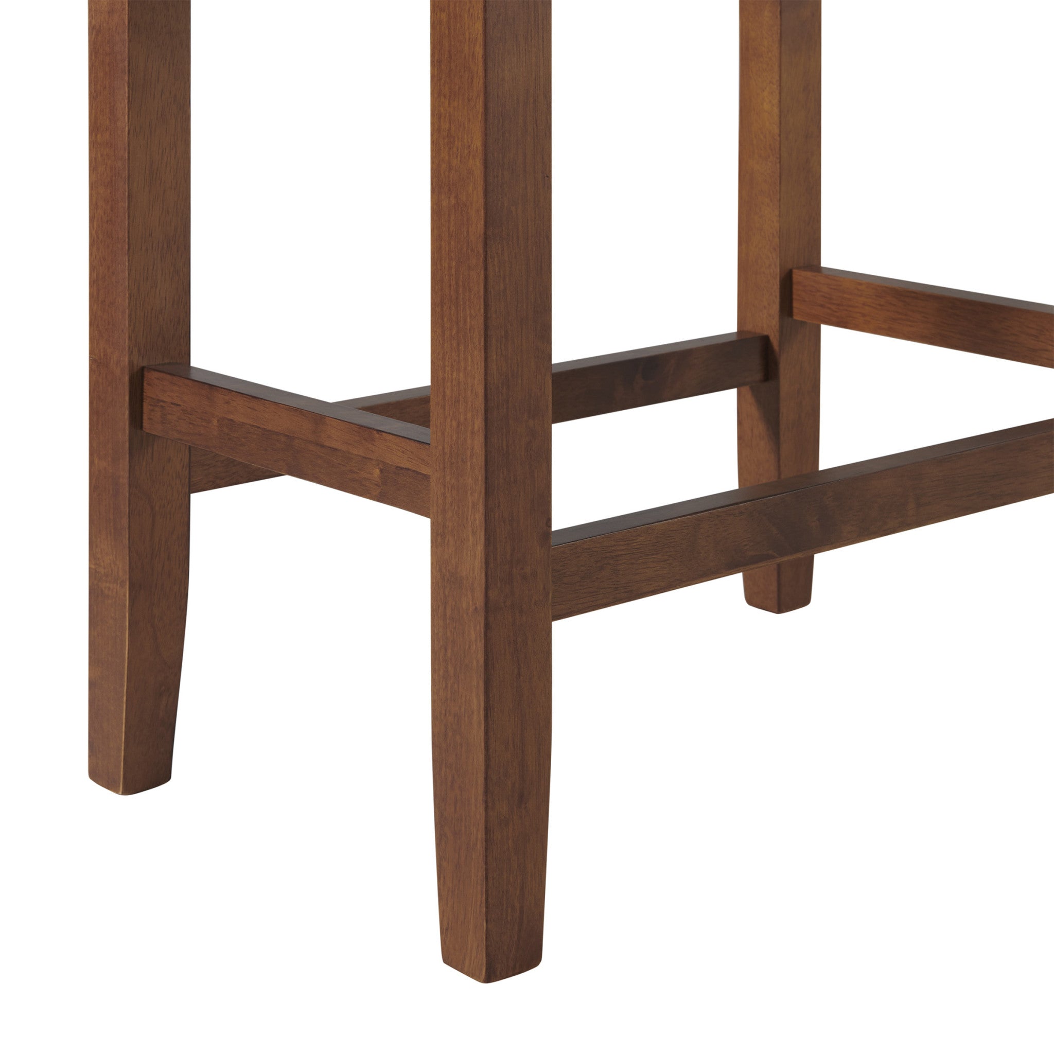 Achieve a high-end look with the Madison Collection 25-Inch Counter Height Bar Stools by Alaterre Furniture. These bar stools for kitchen island are composed of sturdy rubberwood for extra durability, supporting a weight capacity of 285-pounds, with a true walnut finish and clean lines. The backless saddle seat is made of attractive PU leather stuffed with high-density padded foam and a hand-brushed walnut finish that pairs beautifully with a variety of styles, including coastal, modern, rustic, and farmhouse furniture.