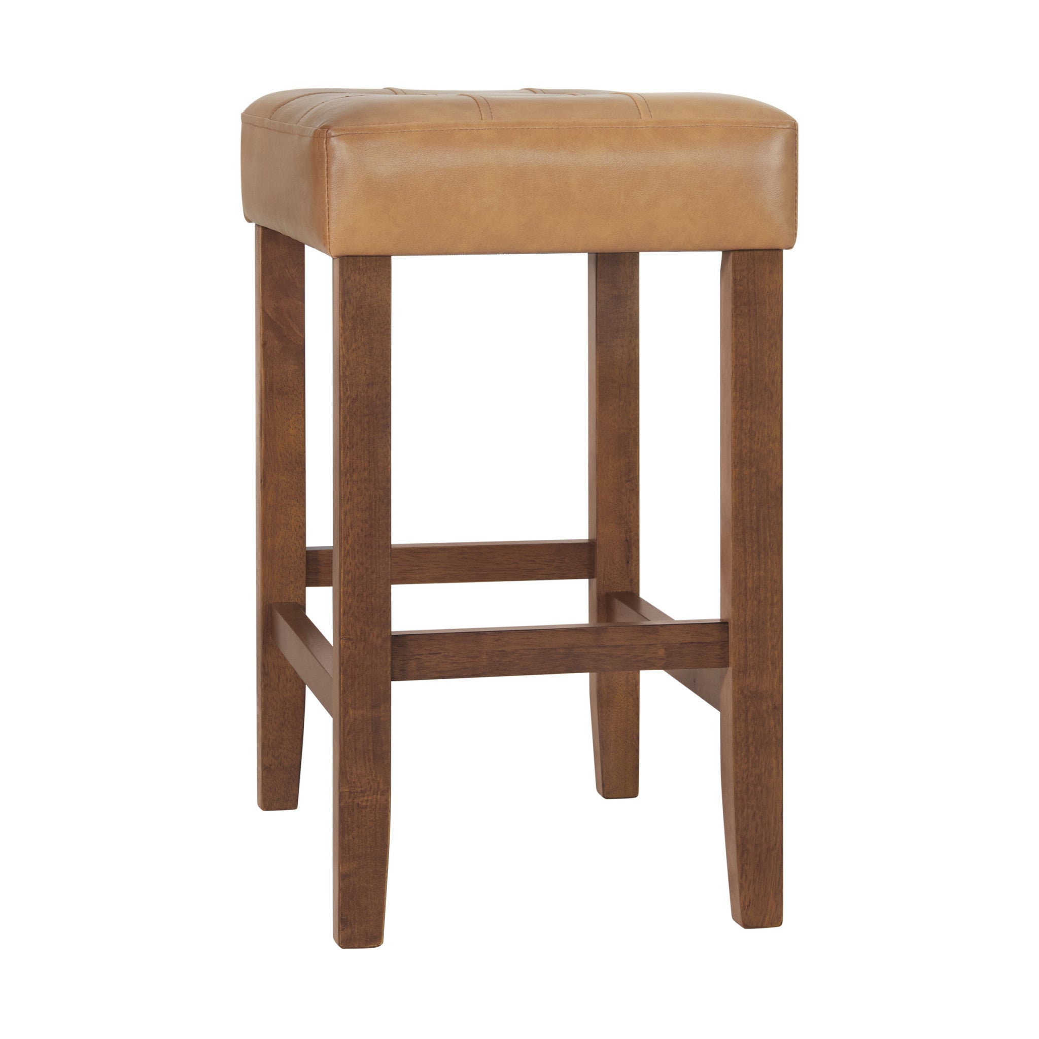 - These kitchen bar stools feature a backless PU leather saddle seat stuffed with high-density foam and a hand-brushed walnut finish that pair well with most furnishing styles
