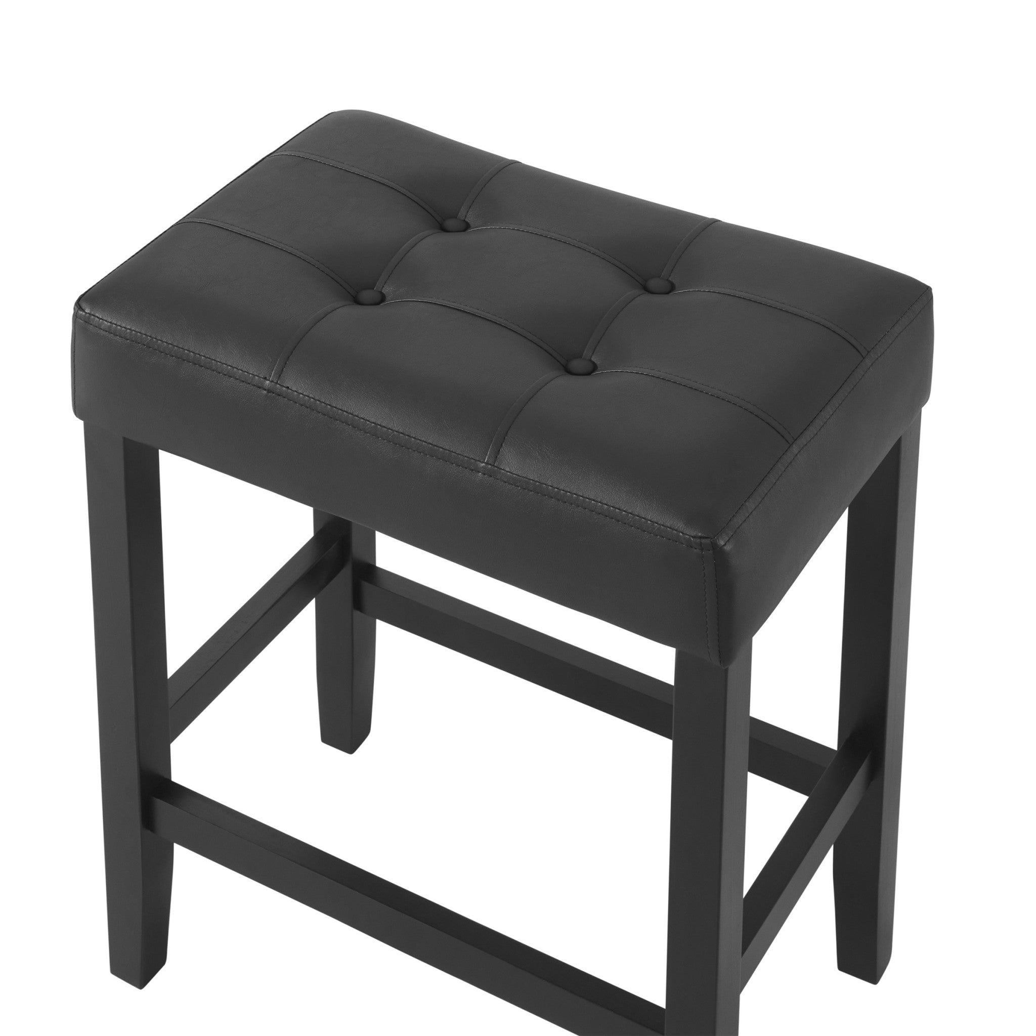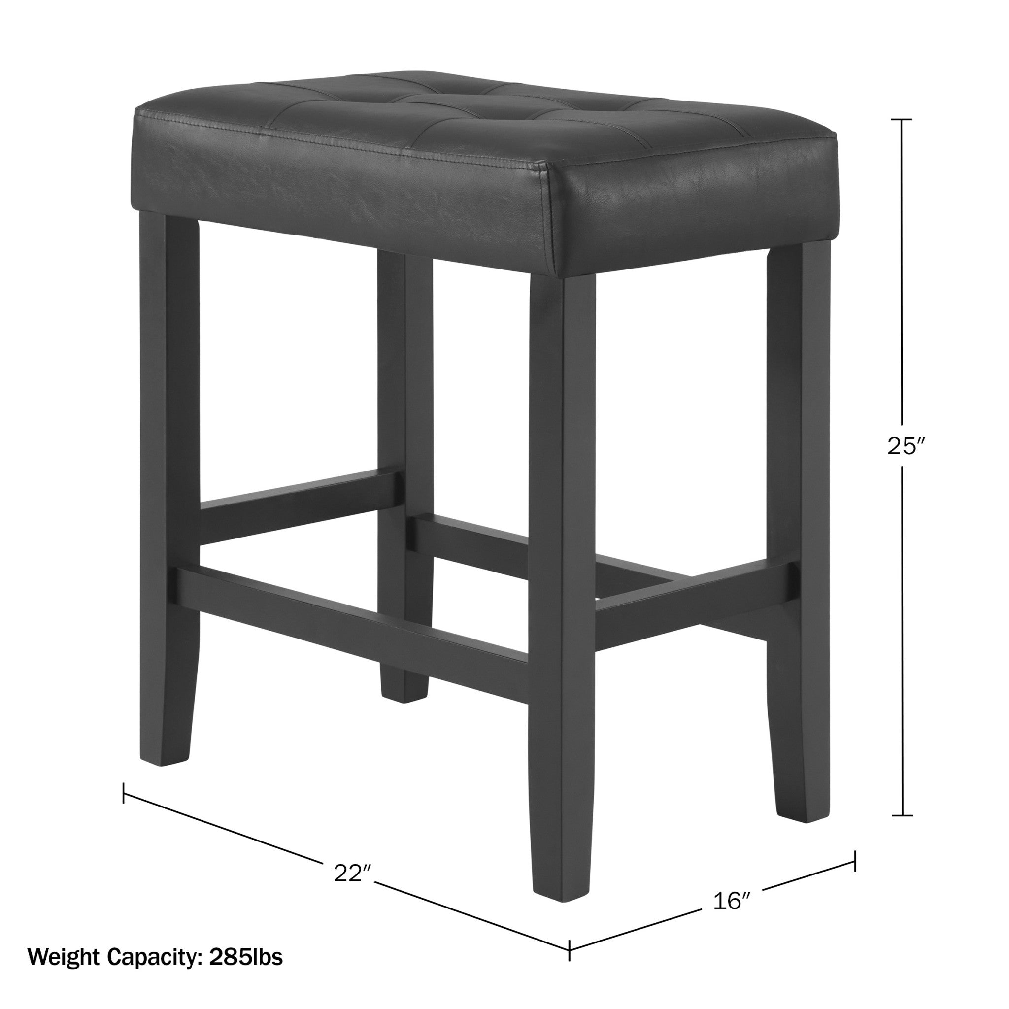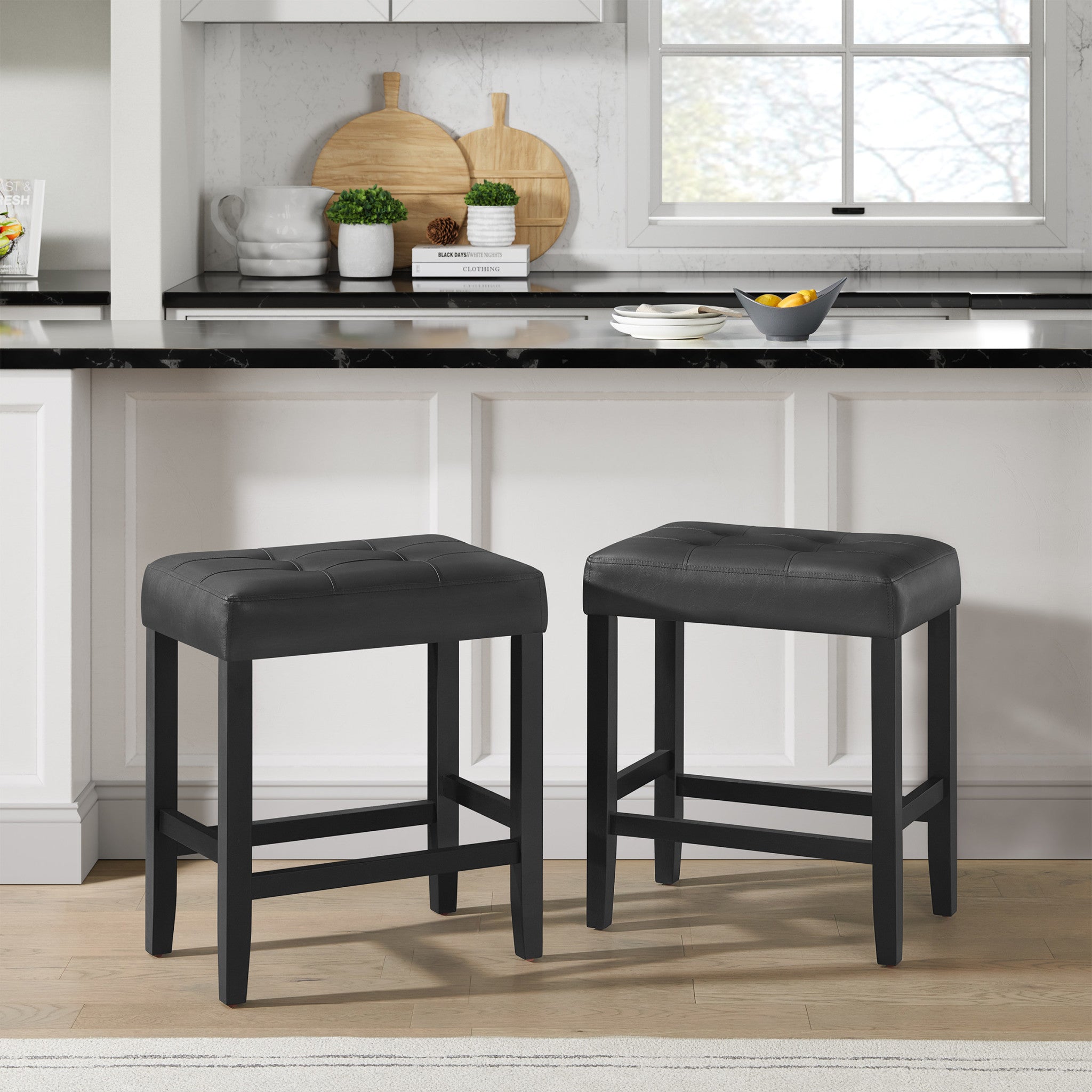 Achieve a high-end look with the Madison Collection 25-Inch Counter Height Bar Stools by Alaterre Furniture. These bar stools for kitchen island are composed of sturdy rubberwood for extra durability, supporting a weight capacity of 285-pounds, with a black finish and clean lines. The backless saddle seat is made of attractive PU leather stuffed with high-density padded foam and a hand-brushed black finish that pairs beautifully with a variety of styles, including coastal, modern, rustic, and farmhouse furniture.