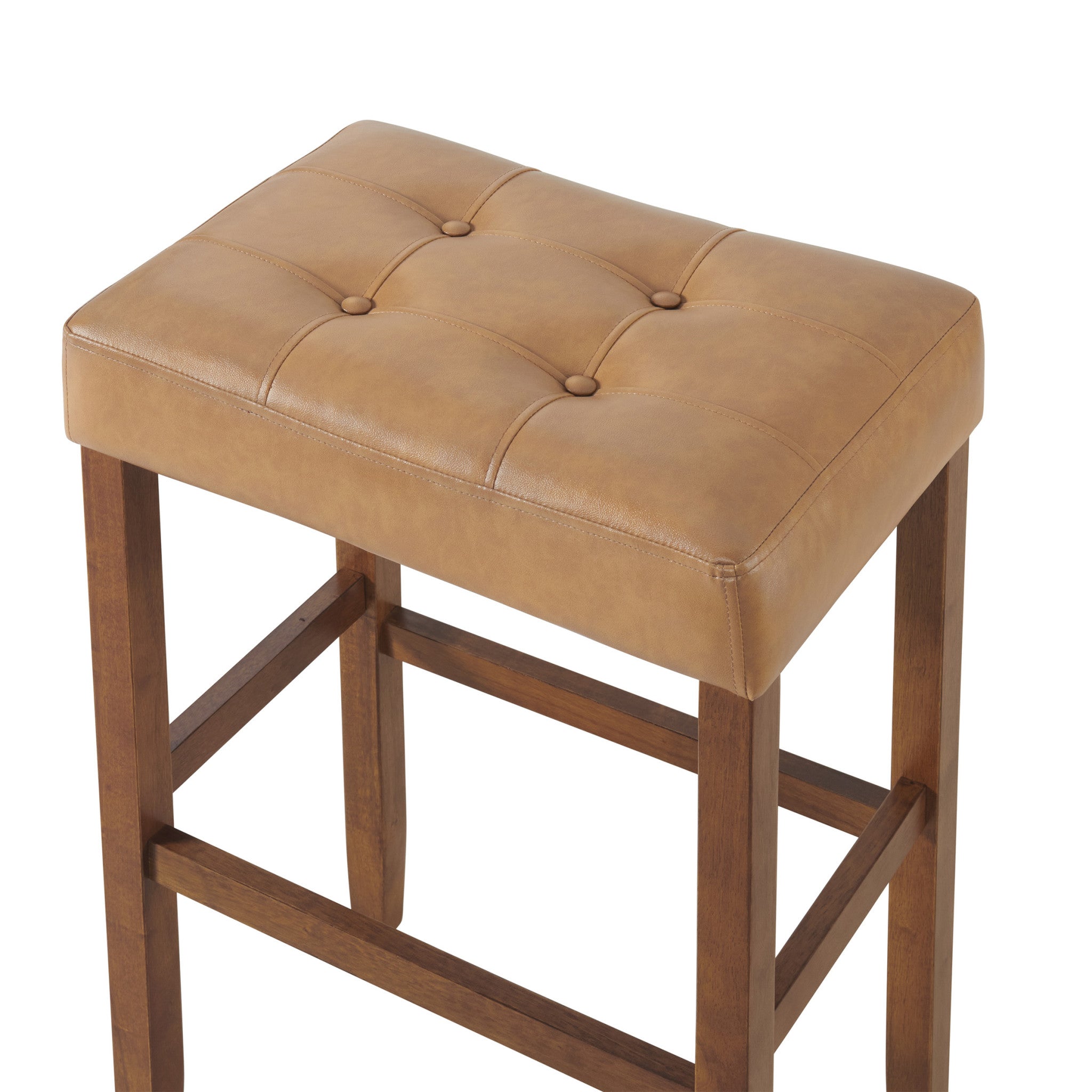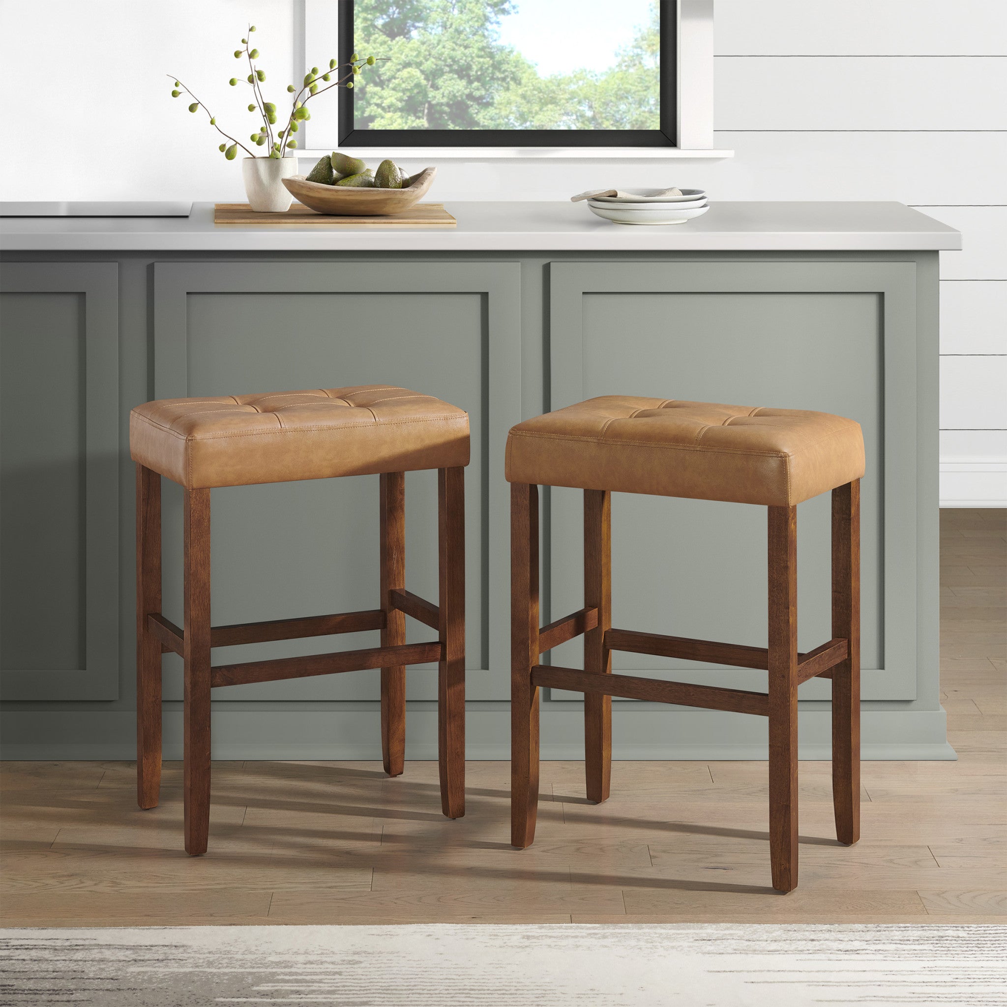 - These kitchen bar stools feature a backless PU leather saddle seat stuffed with high-density foam and a hand-brushed walnut finish that pair well with most furnishing styles