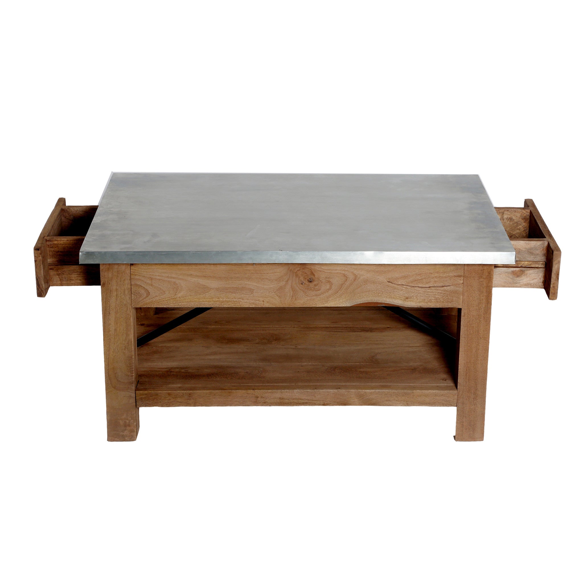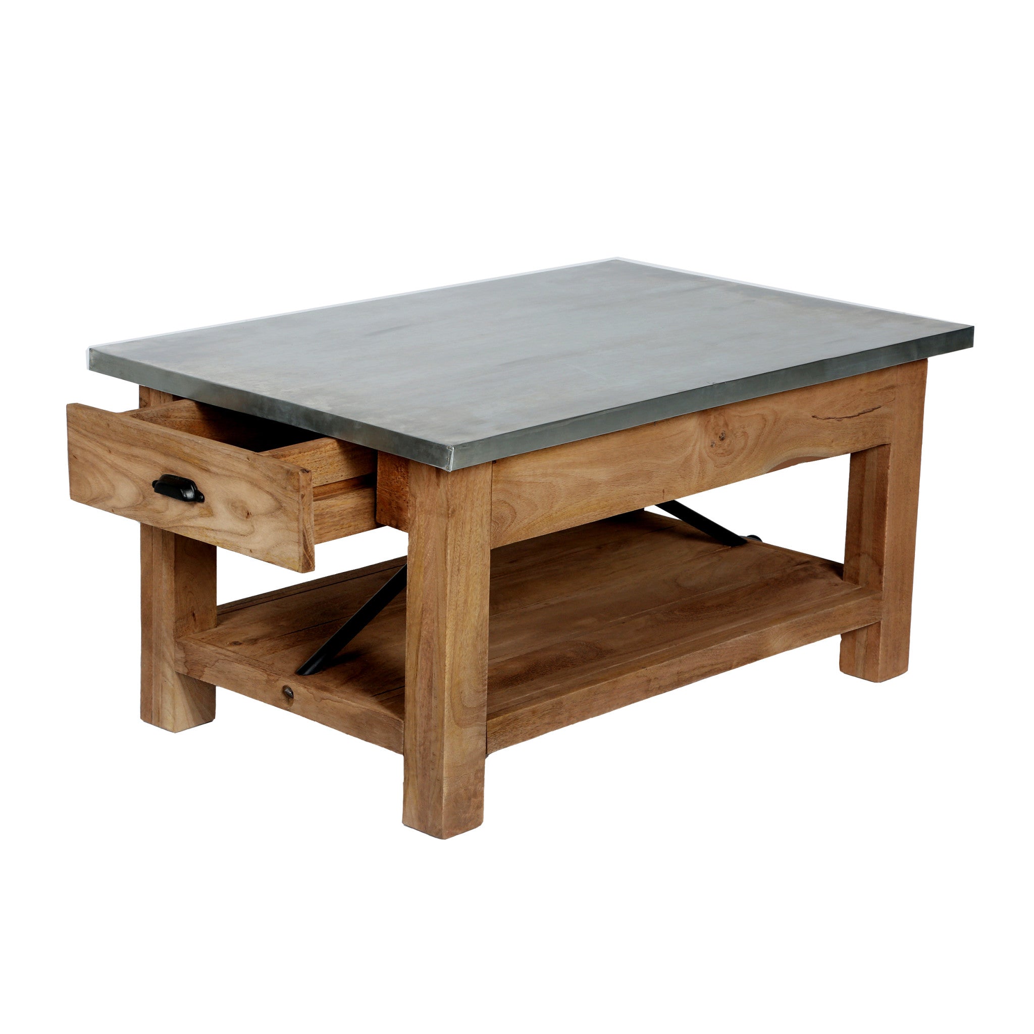 Millwork 36" Wood and Zinc Metal Coffee Table with Shelf