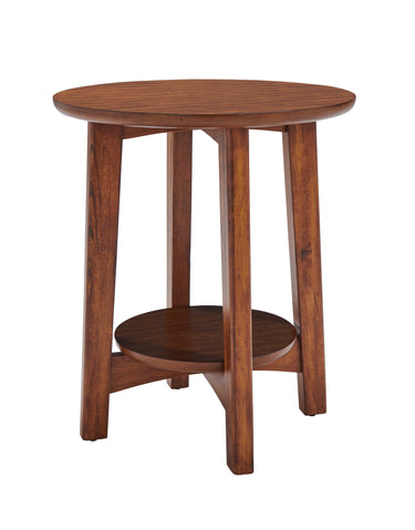 Monterey 20" Round Mid-Century Modern Wood End Table, Warm Chestnut