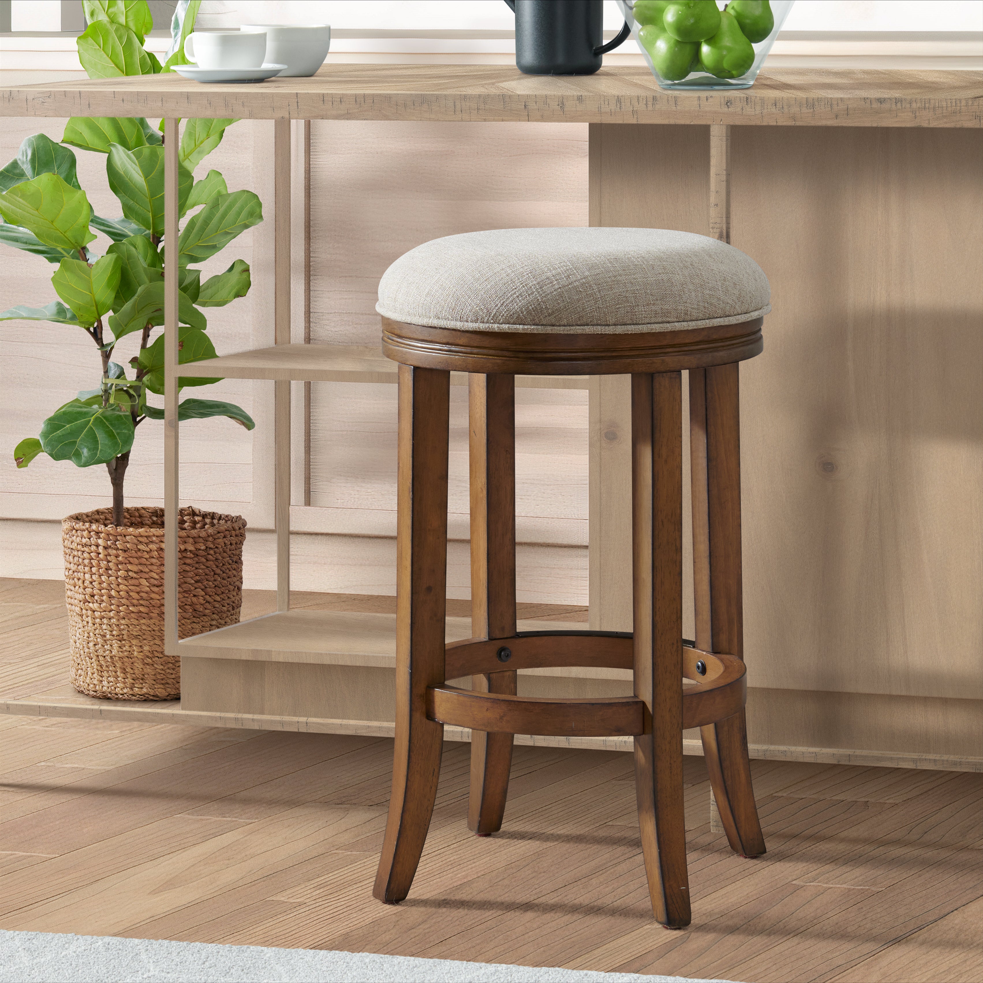 • [DESIGN AND COMFORT] Features a solid rubberwood frame for durability; upholstered in a brown linen-like fabric that complements any room decor; ideal for kitchen islands, bars, or counter setups in homes or commercial spaces