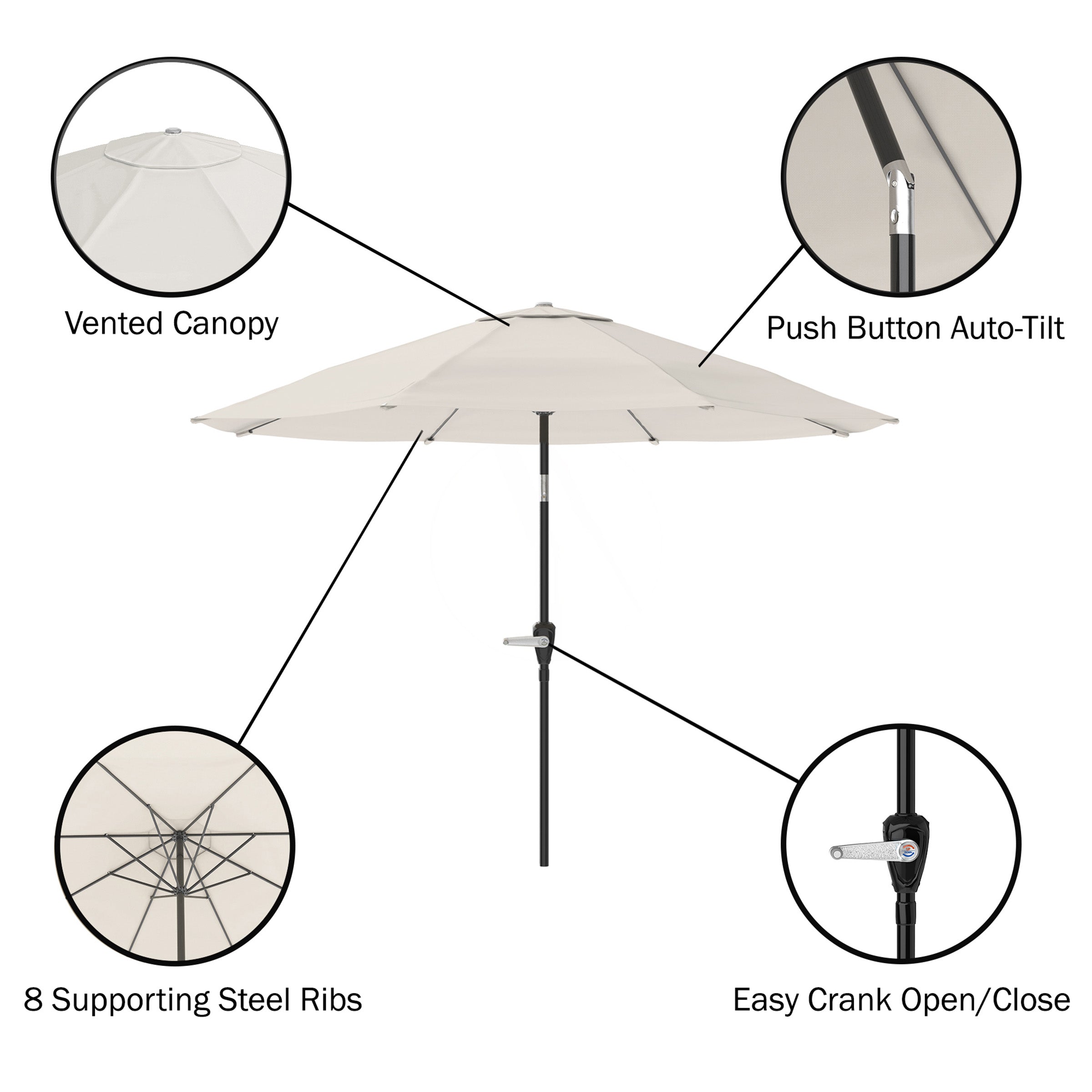 - [ADJUSTABLE SHADE CONVENIENCE] The 10-foot umbrella features an easy crank handle and auto-tilt function, adjusting to your preferred angle. Ideal for both sunny and light rainy days, perfect for outdoor dining or lounging