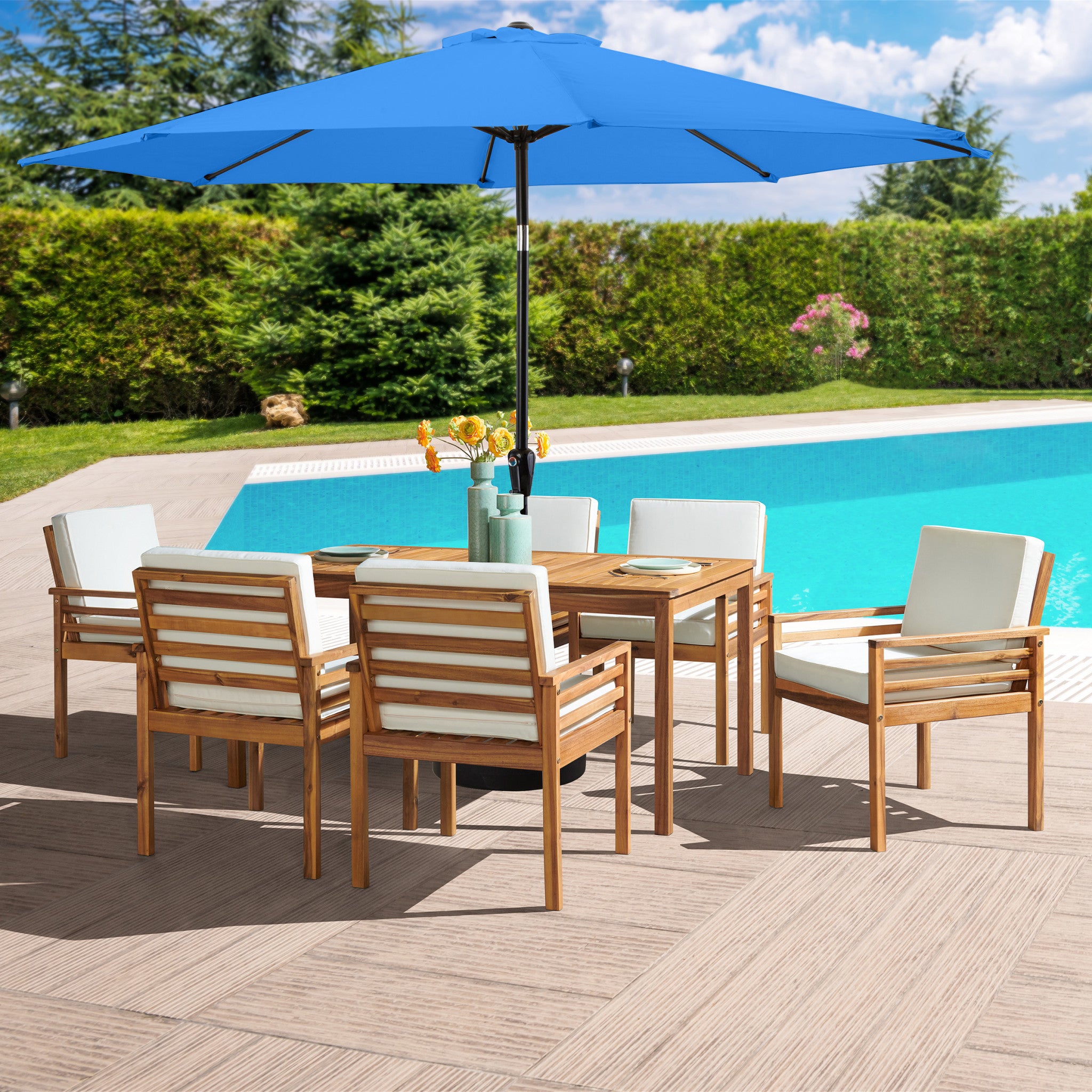 - [SEAMLESS OUTDOOR INTEGRATION] The Brilliant Blue umbrella paired with the natural acacia wood finish adds a vibrant touch to your outdoor decor