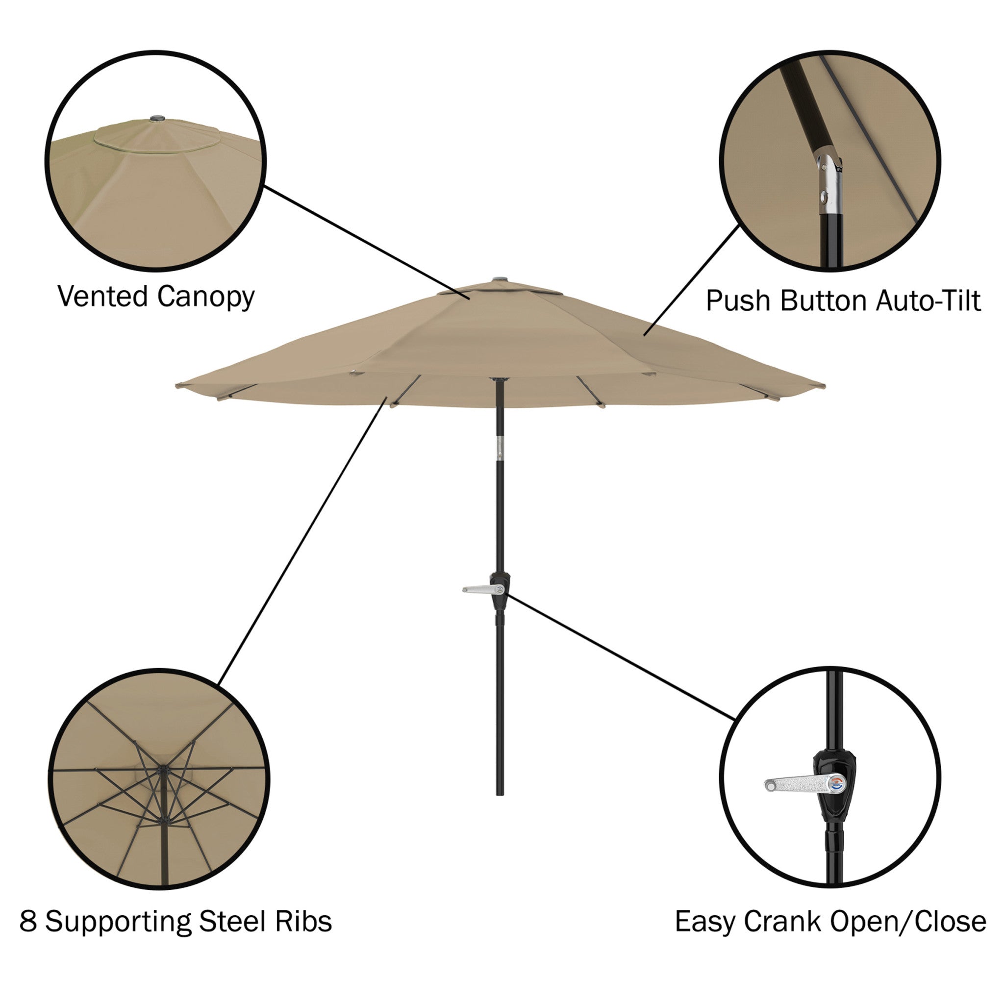 - [EFFORTLESS SHADE ADJUSTMENT] The 10-foot umbrella with auto-tilt and crank handle allows for easy operation, providing continuous shade and comfort in any weather, ideal for sunny outdoor gatherings