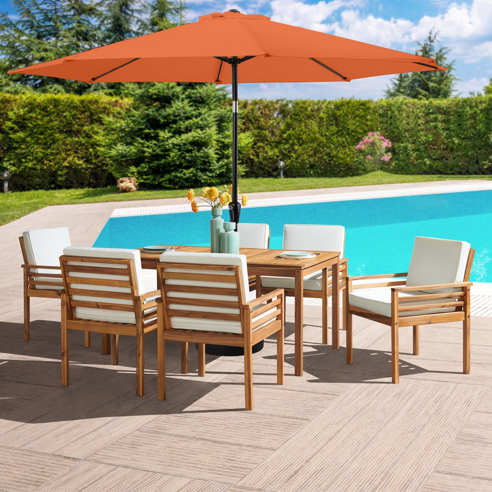 - [WEATHER-RESISTANT QUALITY] Made from acacia wood, this outdoor dining set is designed for year-round use; the 10-foot umbrella with a fade-resistant polyester canopy provides shade, making it ideal for patios and gardens