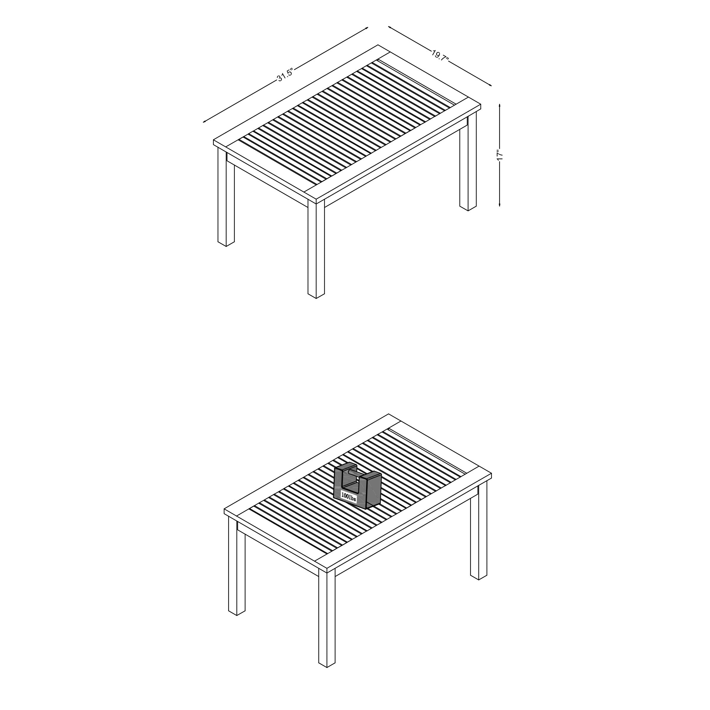 - Dimensions: Love Seat: (L) 44 x (W) 26.7 x (H) 33-inches; Patio Table: (L) 31.5 x (W) 19.7 x (H) 17-inches; Weight Capacity: Sofa: 400lbs; Table: 100lbs
