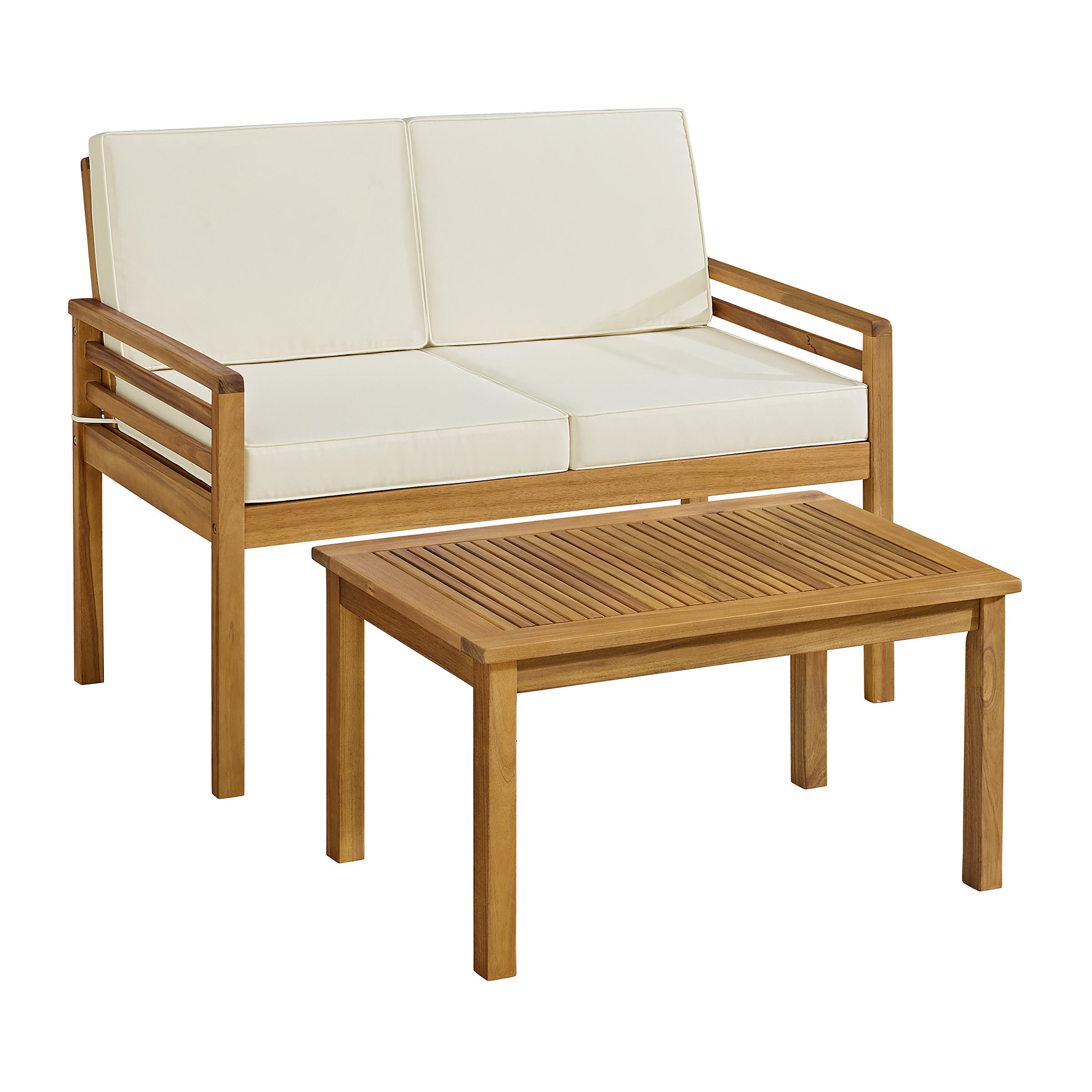 Discover a stylish alternative to traditional outdoor furniture with the Okemo 2-Piece Patio Set by Alaterre Furniture. This set comes with a 44-inch loveseat and a 31.5-inch outdoor table that are made of acacia wood that is weather-resistant for maximum durability and longevity. The love seat features upholstered cushions made of high-performance water-resistant polyester for durability with a 20-inch seat height for a comfortable outdoor seating experience. The table is the perfect height for placing your drinks, plates, books, magazines, and more on the tabletop while relaxing on the sofa.