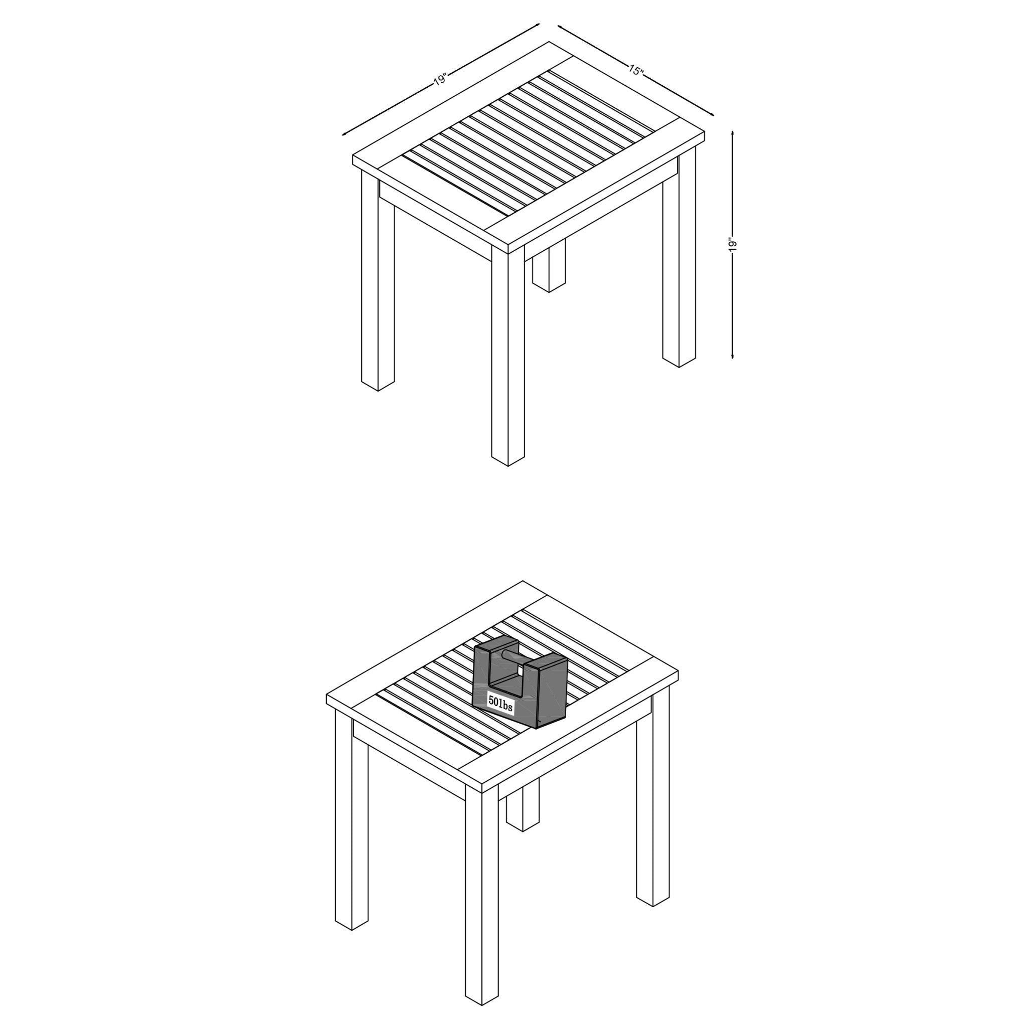 - Dimensions: (L) 19 x (W) 15 x (H) 19-inches; Product Weight: 11lbs; Weight Capacity: 50lbs