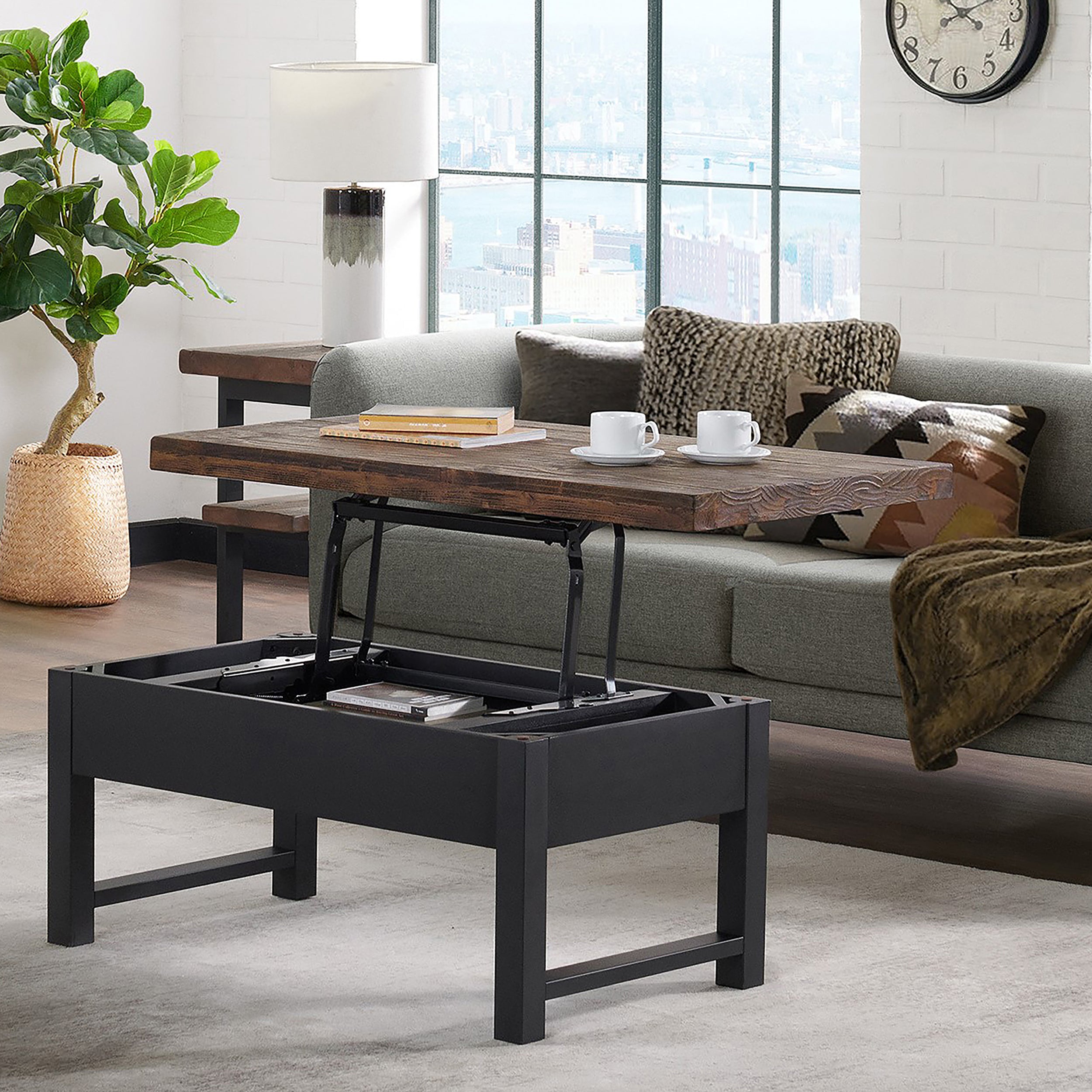 - Coffee table top lifts up and forward to create versatile work surface - browse online or eat dinner while relaxing on your couch