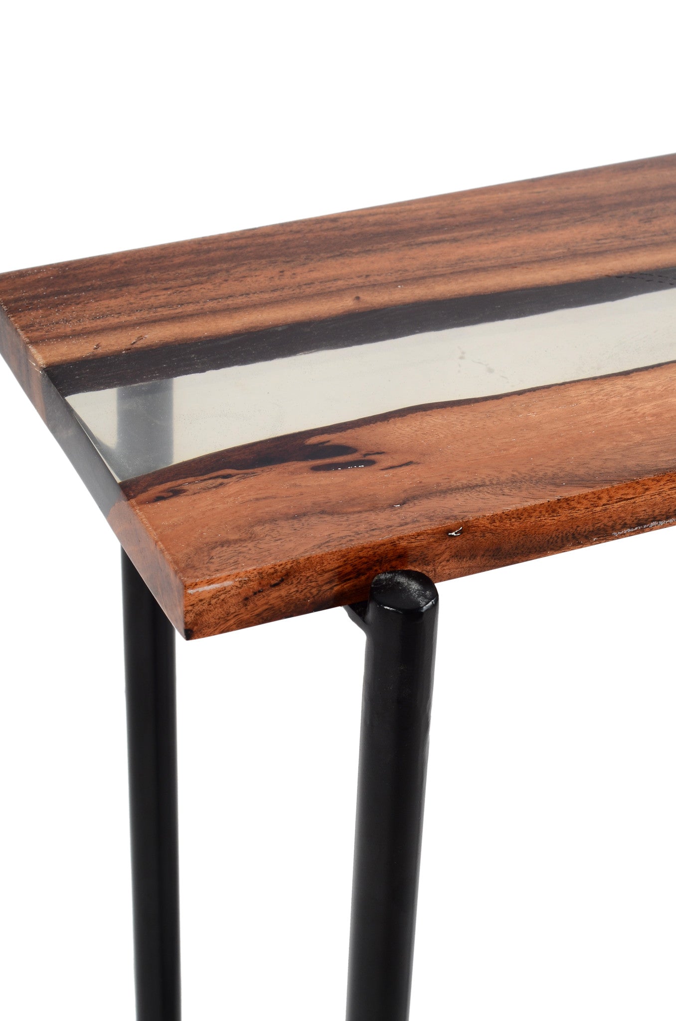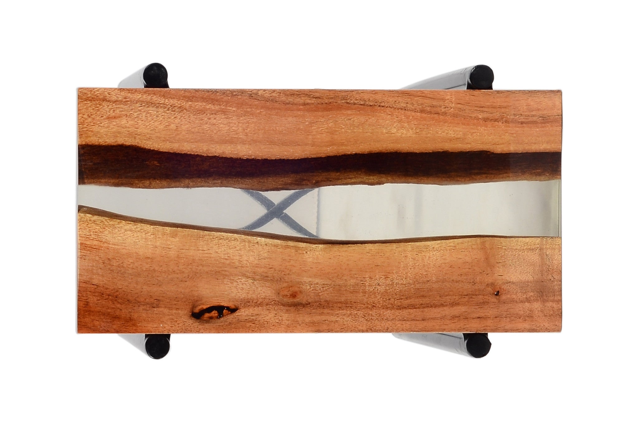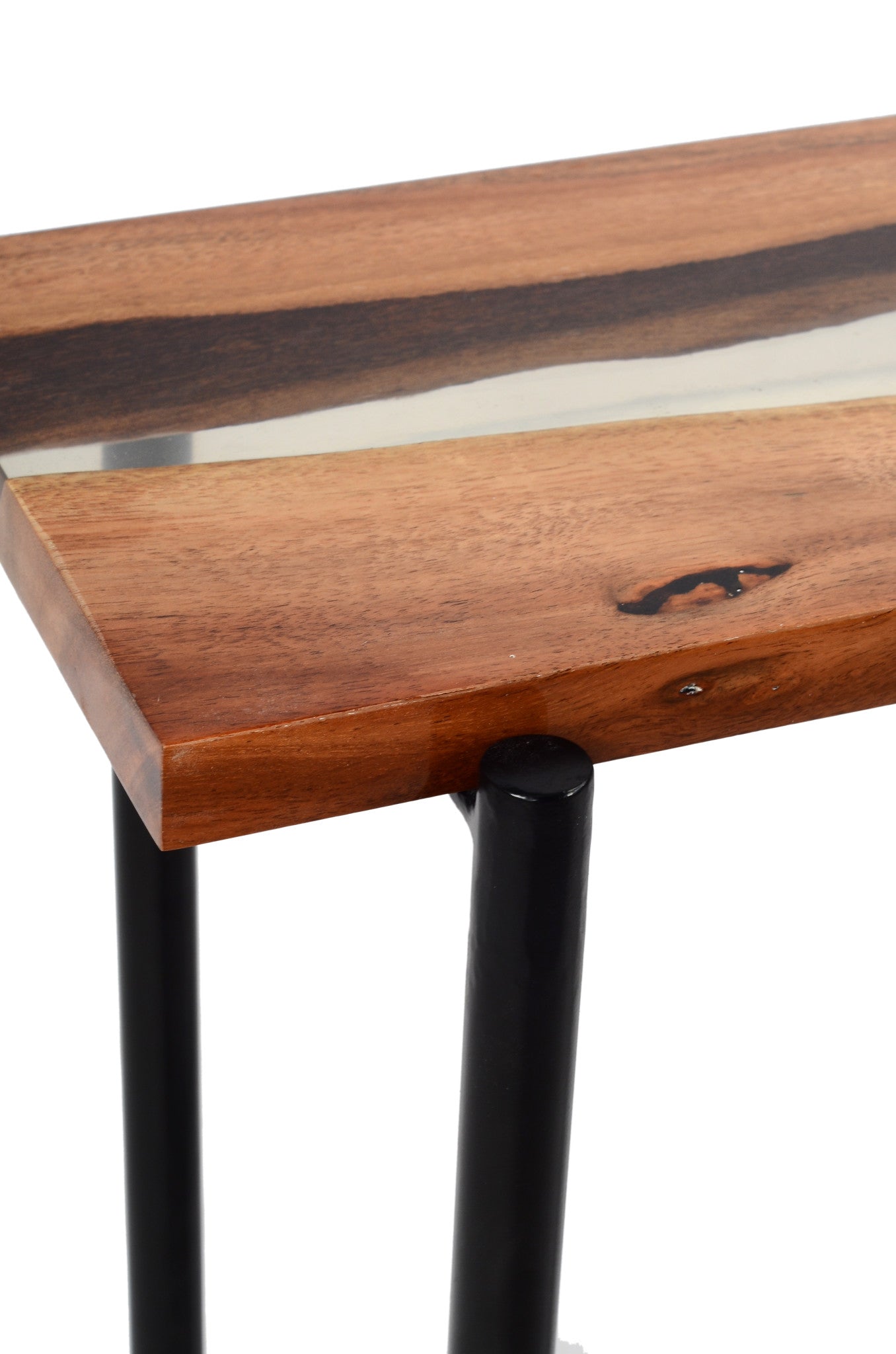 Make your own statement with this gorgeous Acacia Wood and Acrylic table collection. The photos do not do this justice. Each piece is unique; yours will vary from the photo in the way that each piece of wood is uniquely paired and the acrylic set between the pieces. The acrylic flows between the pieces showing even more of the wood's detail.