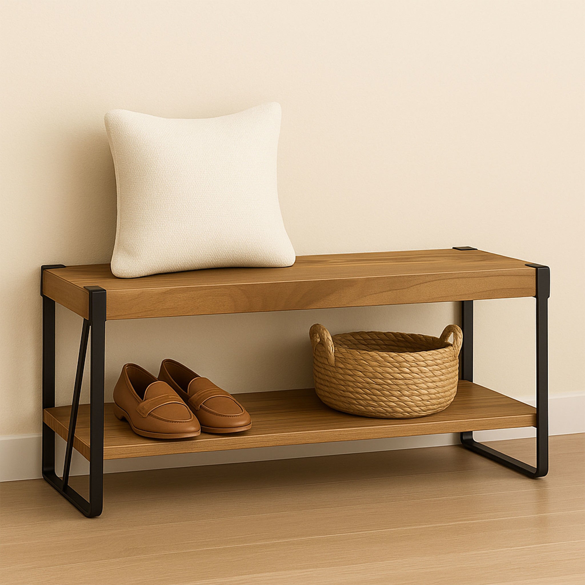 - VERSATILE RUSTIC STYLE – Use as an entryway bench, dining bench, or accent seating; the clear natural finish and industrial accents make it a stylish fit for farmhouse, rustic, or modern interiors.