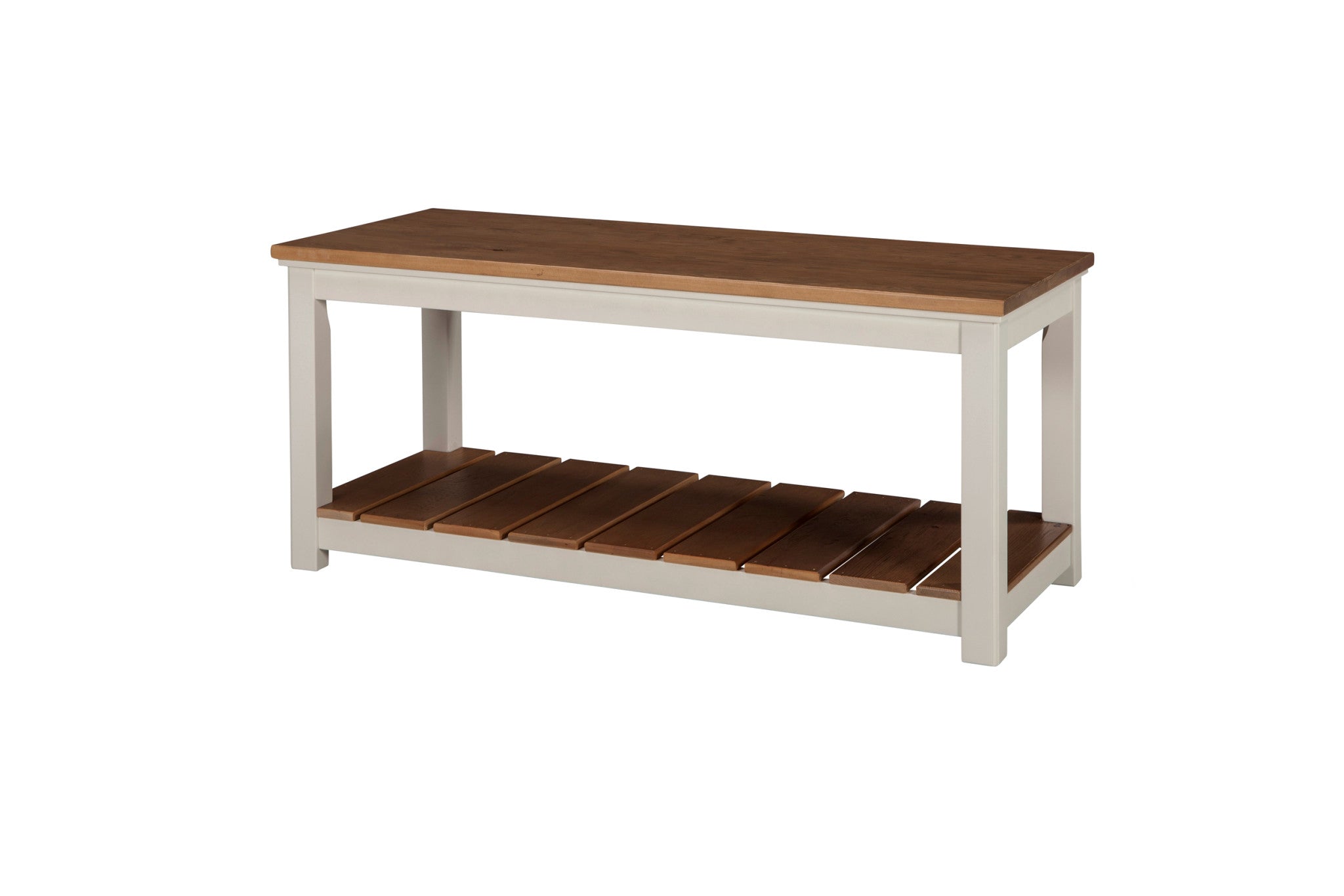 Savannah collection offers modern cottage styling; with its wood top and white painted legs it offers fresh style to your living space. Savannah includes end tables, console tables and media/storage pieces. You can design the perfect living room for your home. This 40" coat hook and bench set features 4 double hooks and one lower shelf for additional storage or display space. The pine construction makes this piece sturdy and durable.