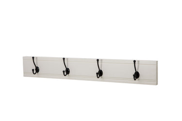 - [DESIGN AND FUNCTIONALITY] Elegant ivory finish and sturdy wood construction; features four double hooks that comfortably hang eight items, optimizing your entryway or mudroom space; ideal for coats, bags, and accessories