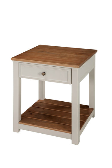 - [CONTEMPORARY DESIGN] Featuring modern cottage styling, this 1-drawer end table has a wood top and ivory painted legs; perfect for any coastal, cottage, or modern farmhouse space