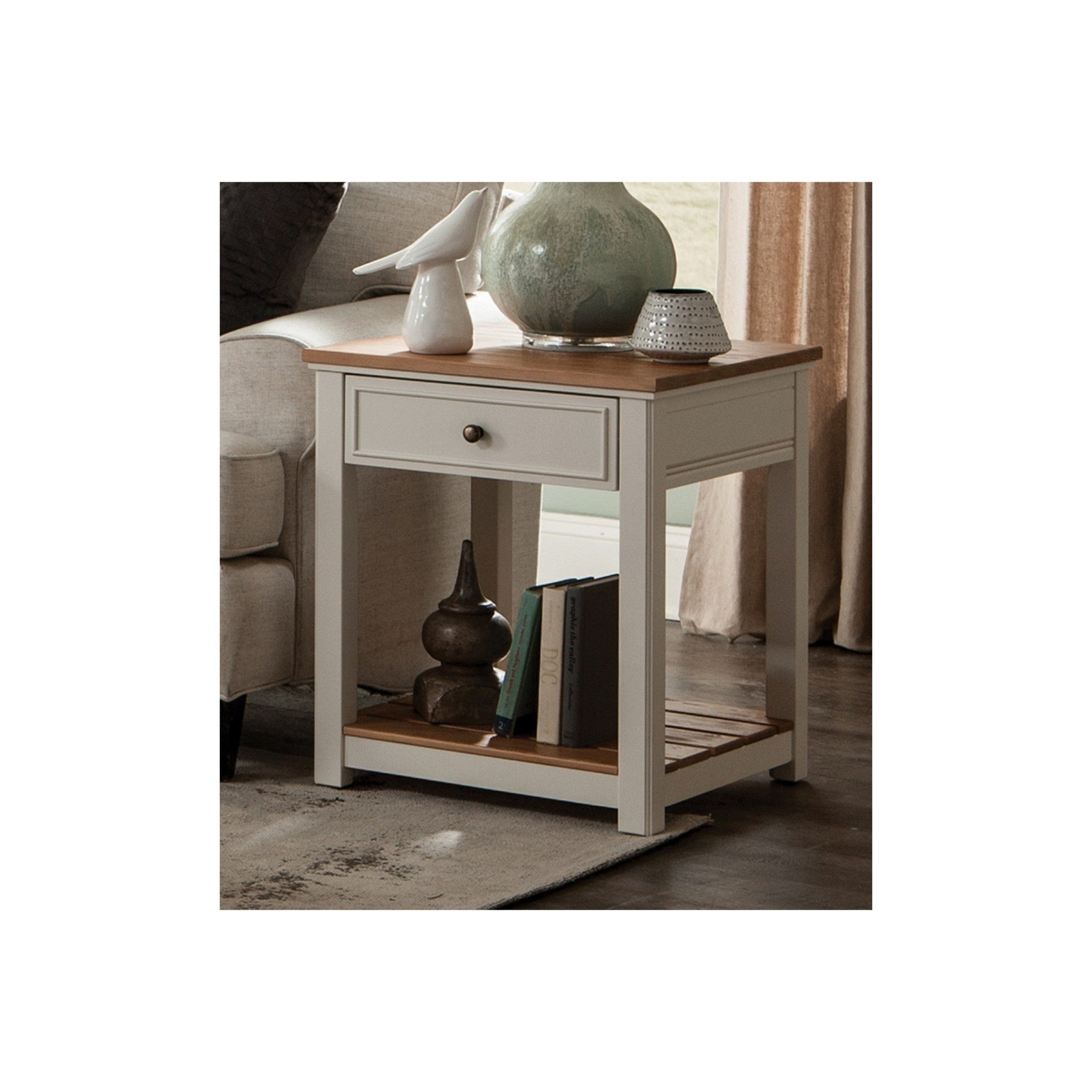 - [FUNCTIONAL ELEGANCE] Elevate your space with the Savannah 1-Drawer End Table; features a natural wood top and ivory legs, offering ample storage for decor or essentials