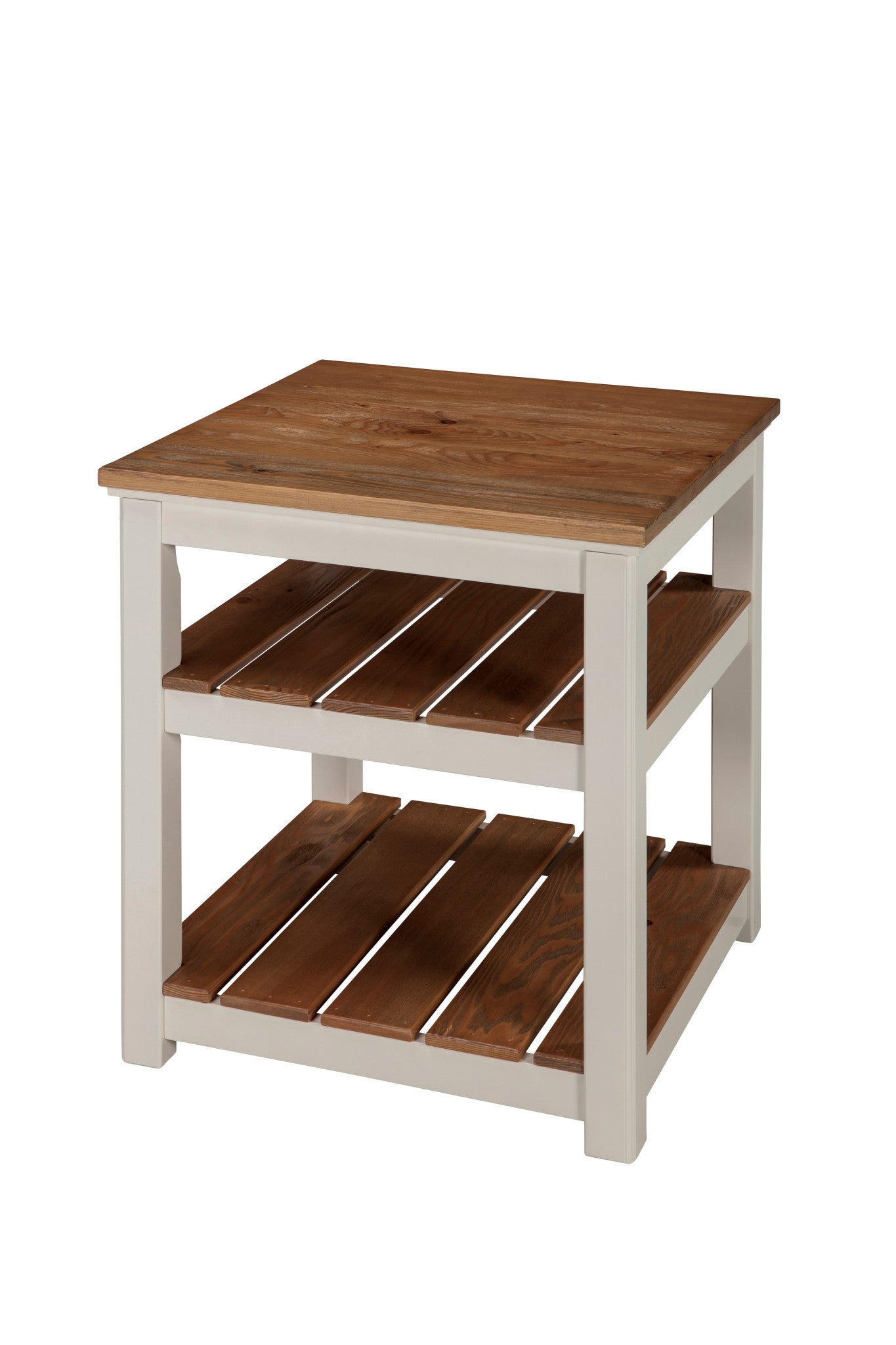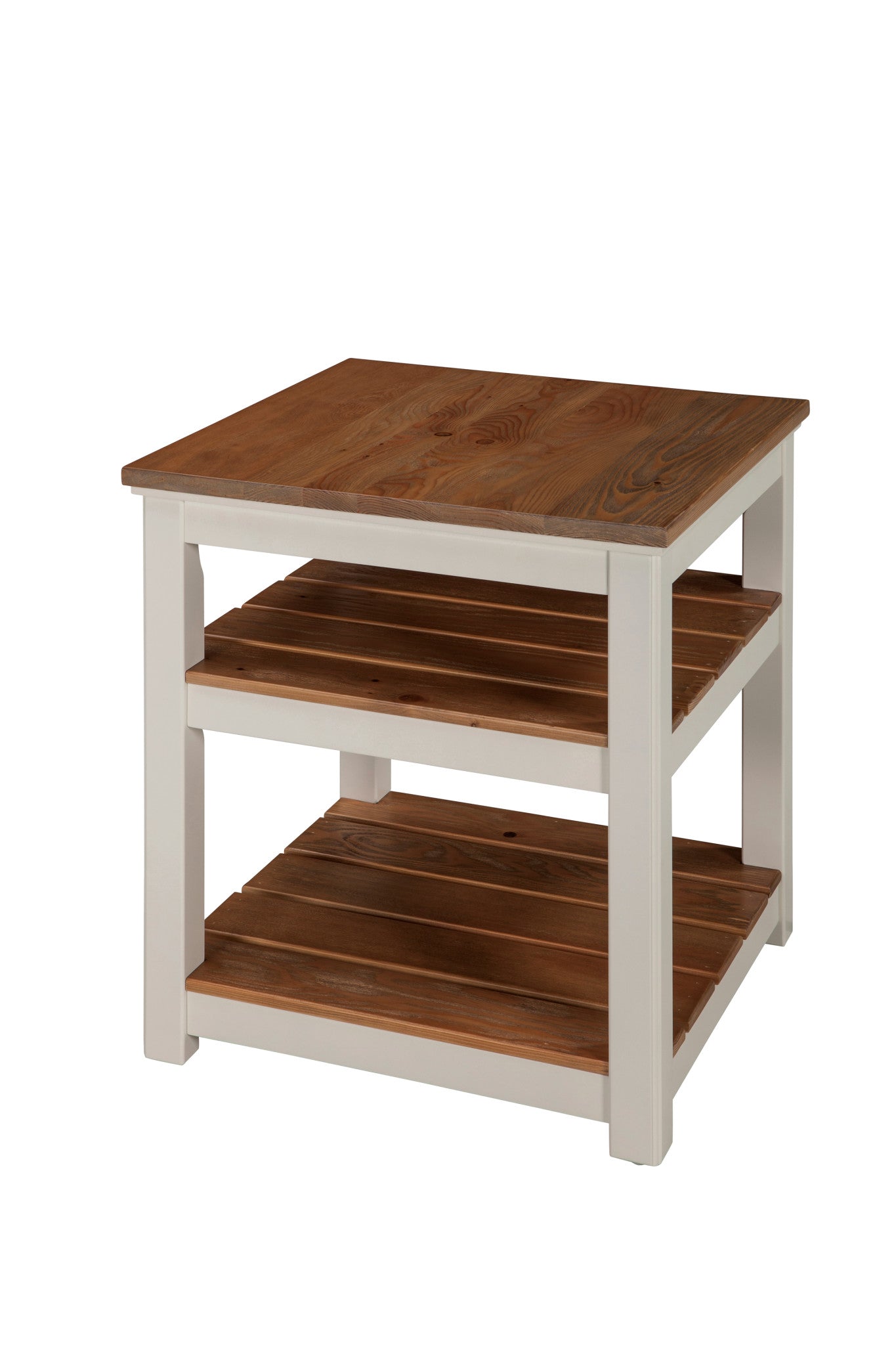 - [EFFORTLESS INTEGRATION] The Savannah 2-Shelf Square End Table blends with any living room; its cream pine finish complements decor while providing a spot for lamps and drinks
