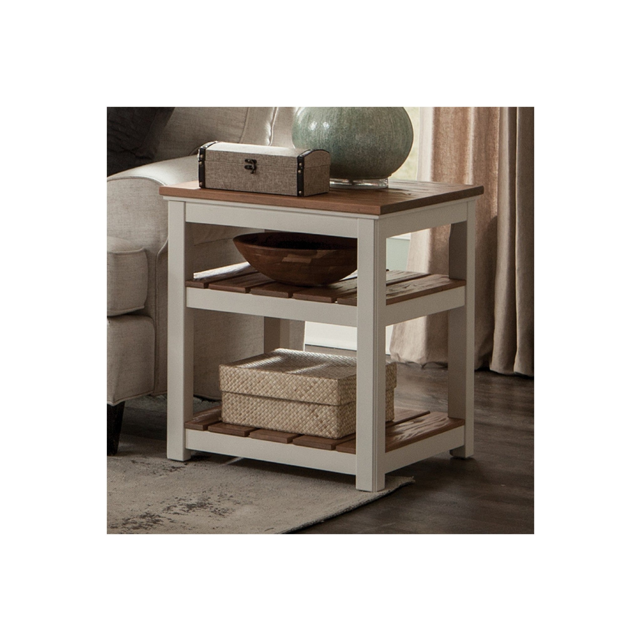 - [FASHIONABLE & PRACTICAL] Savannah End Table with two shelves, crafted from pine wood with a natural top and ivory legs. Ideal for coastal, cottage, or farmhouse decor