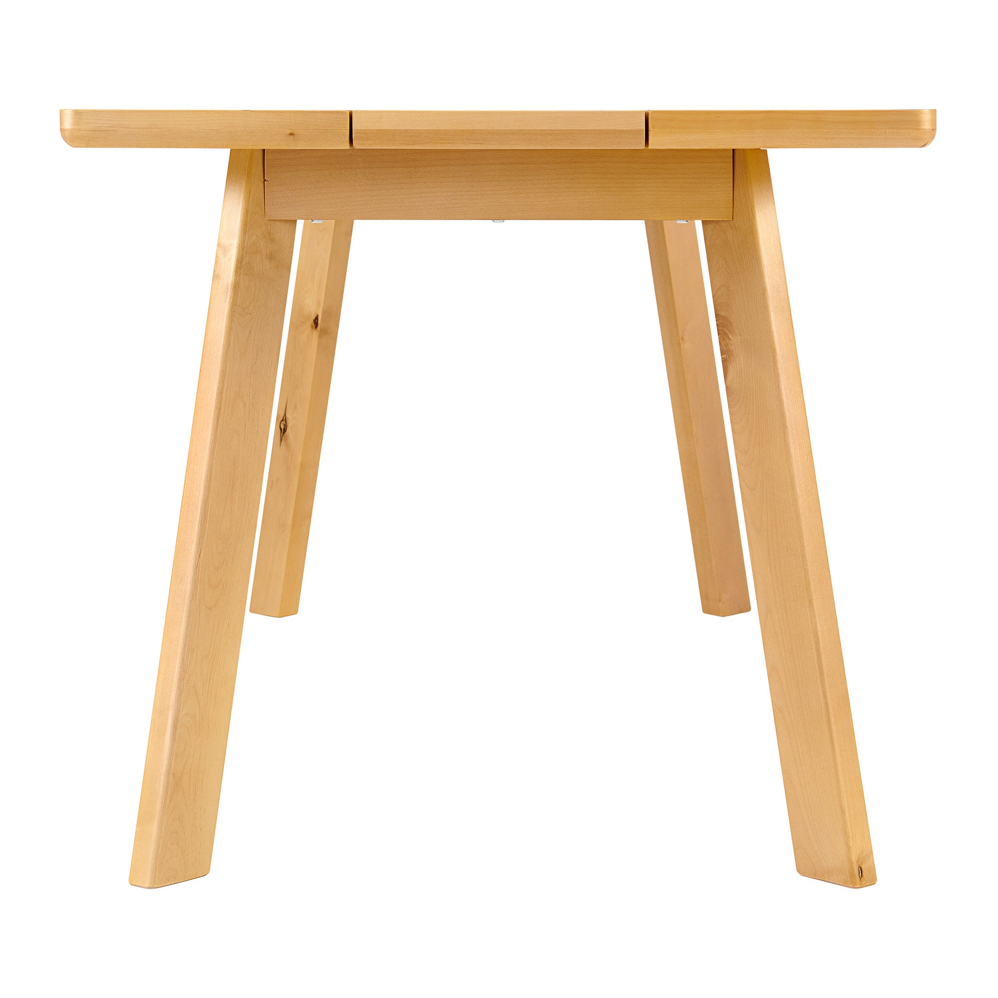 Anchor your dining room or eat-in kitchen with this stunning rectangle dining table with matching bench. With smooth lines and a slightly rounded edge, this table and bench look beautiful, and allow you to both host and dine with ease. The rounded edges and gently sloping legs blend effortlessly with any decor style. Constructed of solid birch legs, composite wood and maple veneer. This set is sure to give your home a warm, inviting vibe.