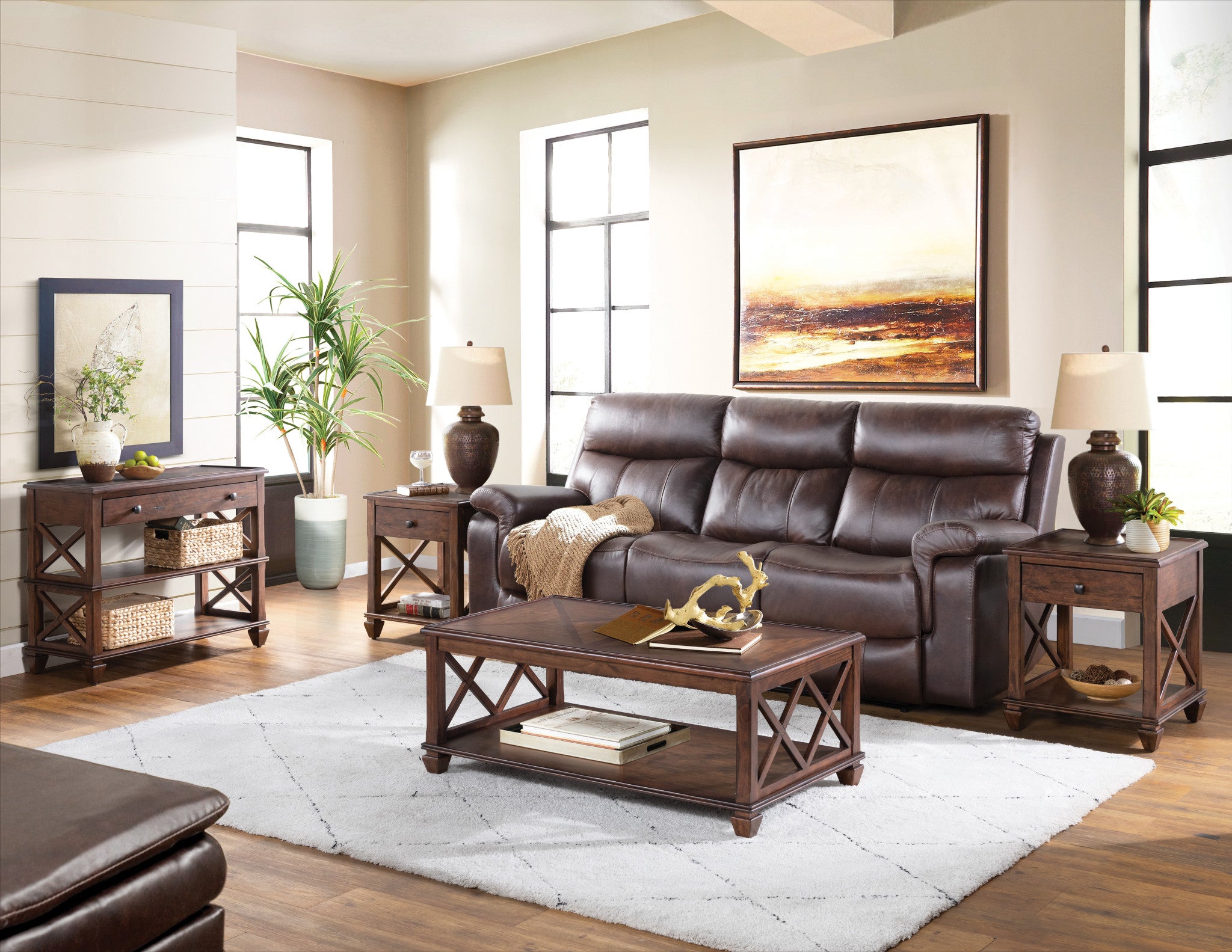 • [OVERVIEW] Make a statement in your living room with this classic collection featuring a timeless design made of solid pine wood and finished with a distressed cherry stain
