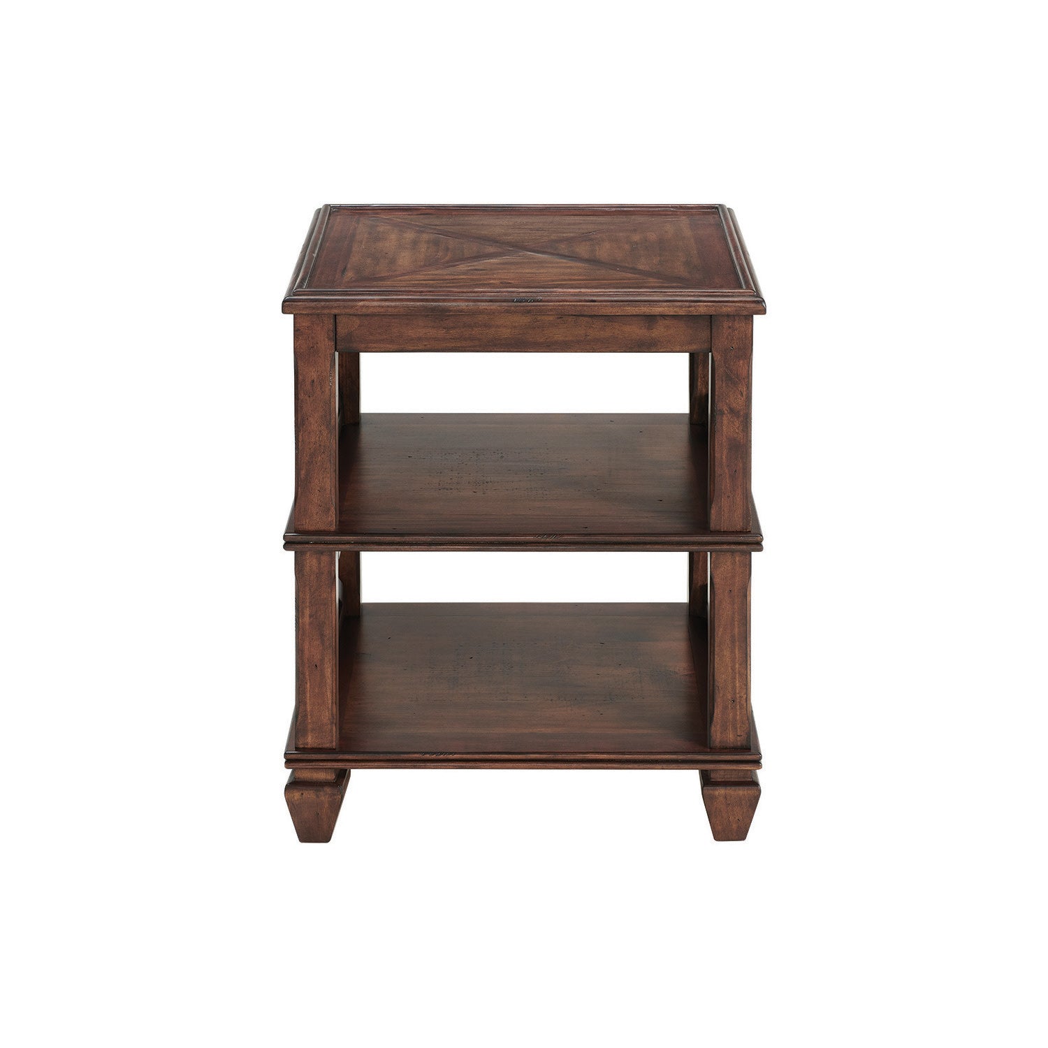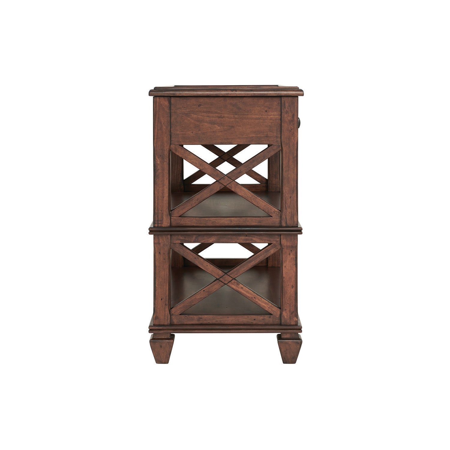 This classic collection is rich in character. The open side panels give a relaxed feel to these timeless pieces. Made of pine wood and finished in a distressed cherry stain that brings warmth to your living space. This set of four tables is sure to make a statement in your living room.