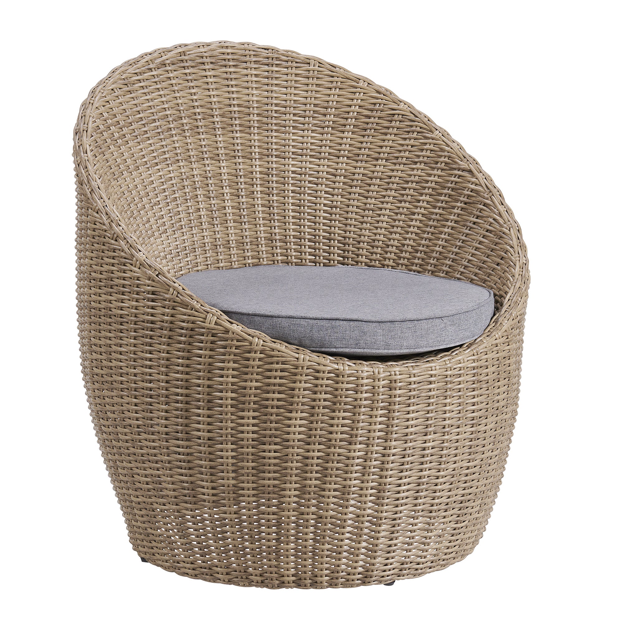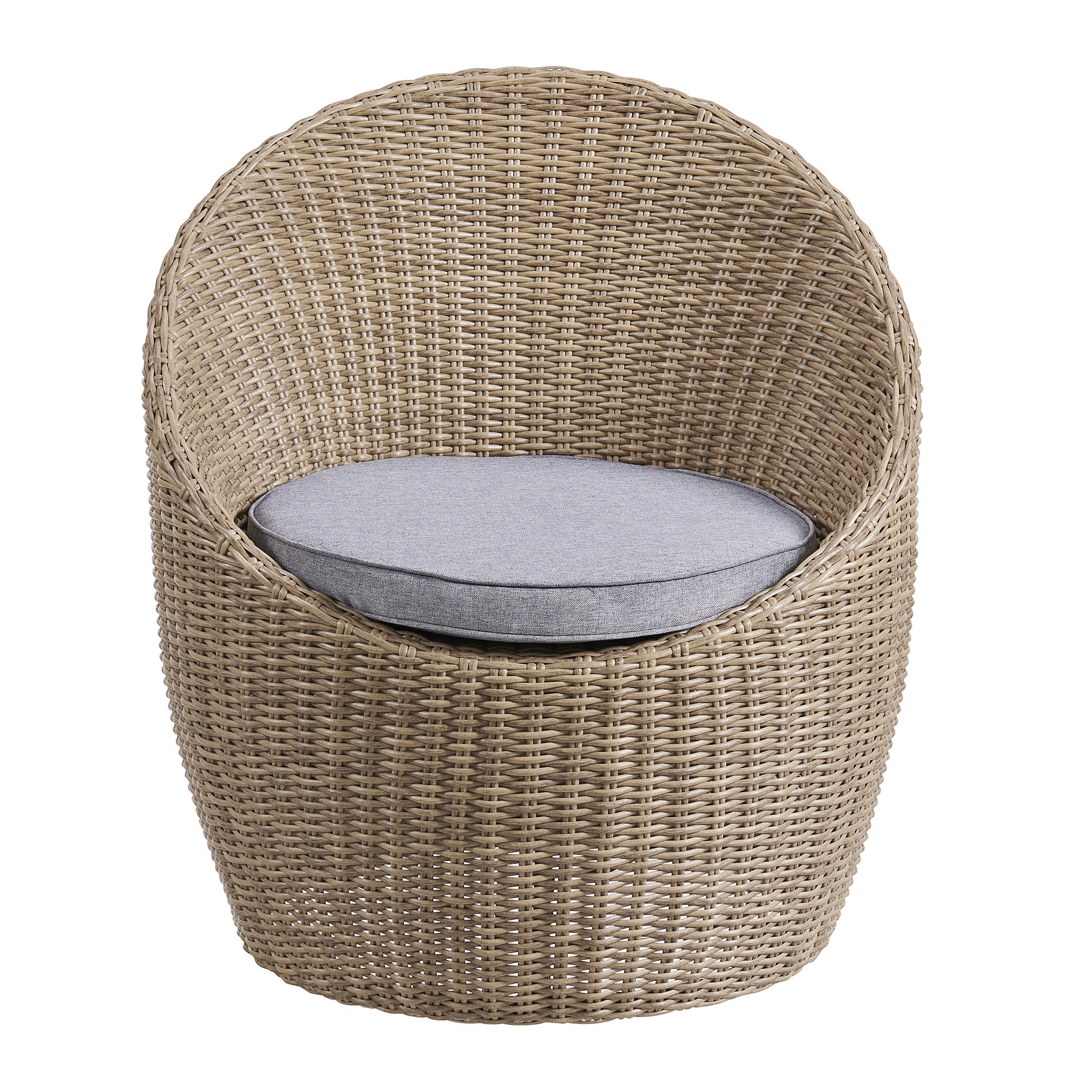 This three piece set is the perfect cozy place to sit outdoors while eating, chatting, or relaxing. Perfect for your garden, patio, porch or balcony the outdoor wicker set includes two brown wicker chairs with removable gray seat cushions, along with an hourglass-shaped cocktail table. The casual style lends itself to practically any outdoor decor. The set comes fully assembled, so you can quickly set up and enjoy your new furniture with minimal fuss. Durable all-weather wicker construction will withstand many weather conditions.