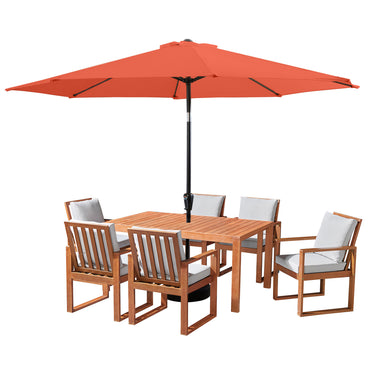 8 Piece Set, Weston Table with 6 Chairs, and 10-Foot Auto Tilt Umbrella Orange