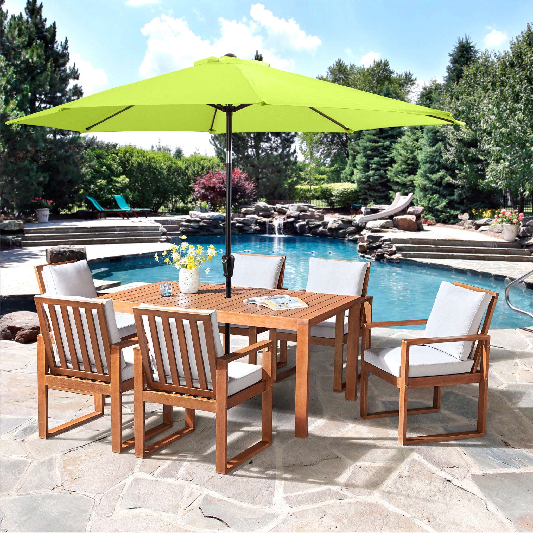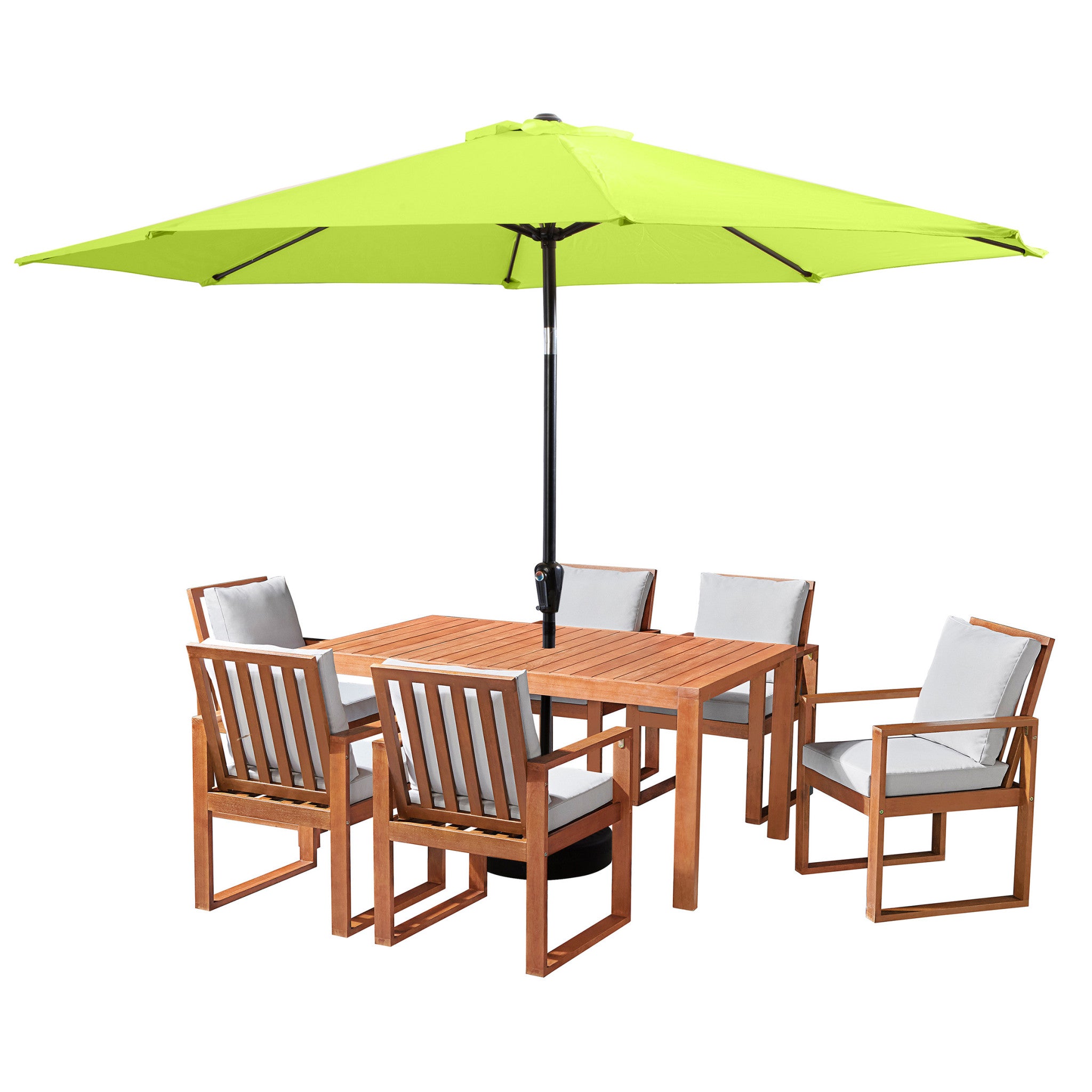 8 Piece Set, Weston Table with 6 Chairs, and 10-Foot Auto Tilt Umbrella Lime Green