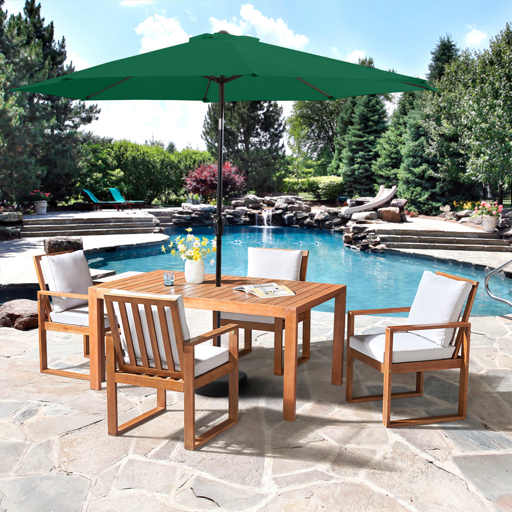 • [SEAMLESS INTEGRATION & AESTHETIC APPEAL] Hunter Green umbrella with neutral wood finishes and gray cushions blends effortlessly with outdoor decor, adding a touch of elegance