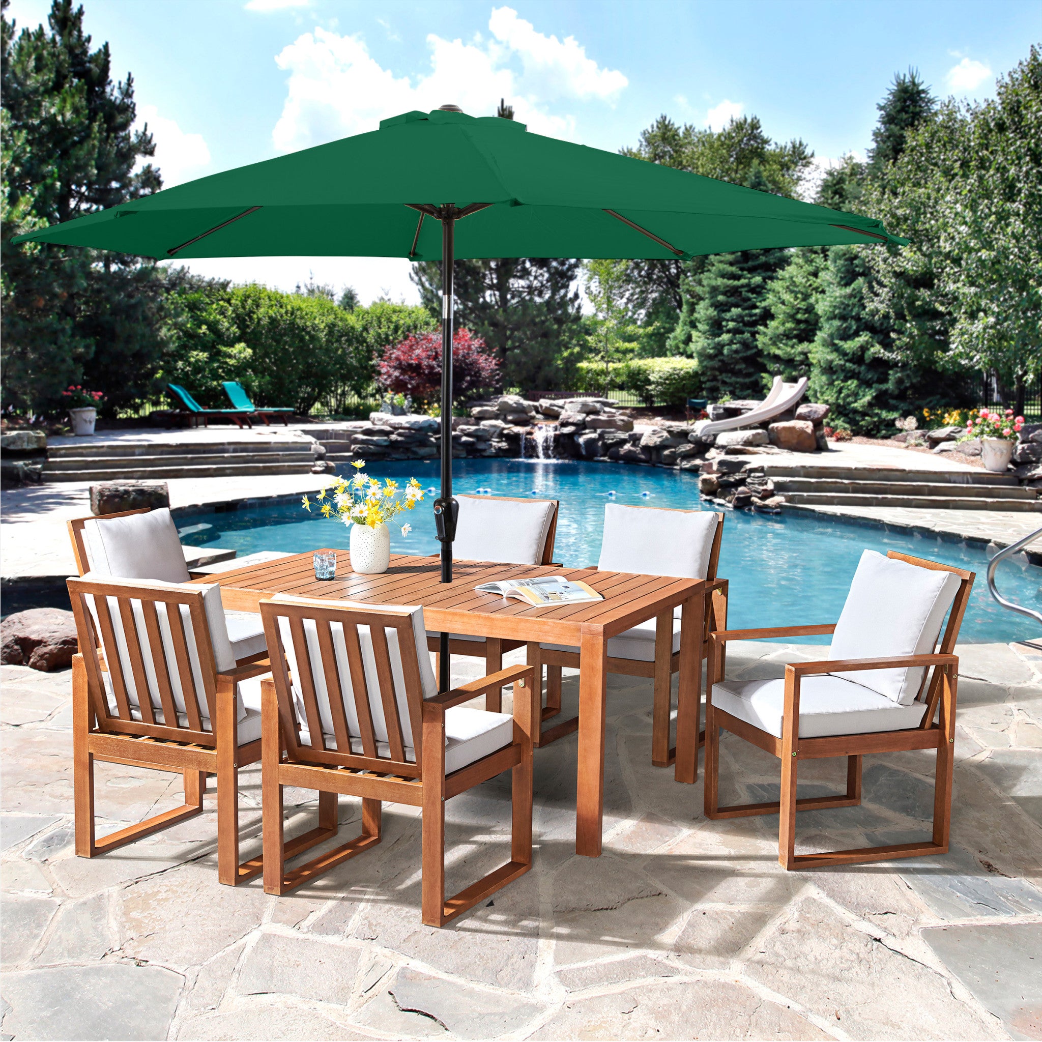 • [DURABILITY & WEATHER RESISTANCE] Built from robust eucalyptus wood for natural weather resistance; includes a Hunter Green 10-foot umbrella for shade and UV protection, perfect for outdoor use