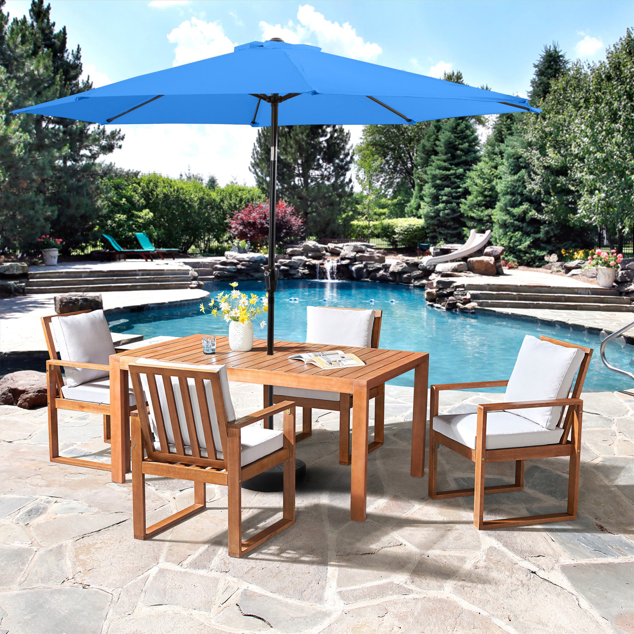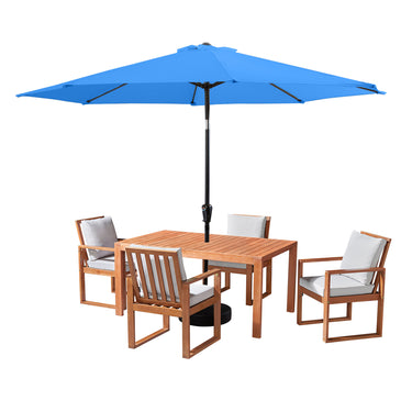 6 Piece Set, Weston Table with 4 Chairs, and 10-Foot Auto Tilt Umbrella Brilliant Blue