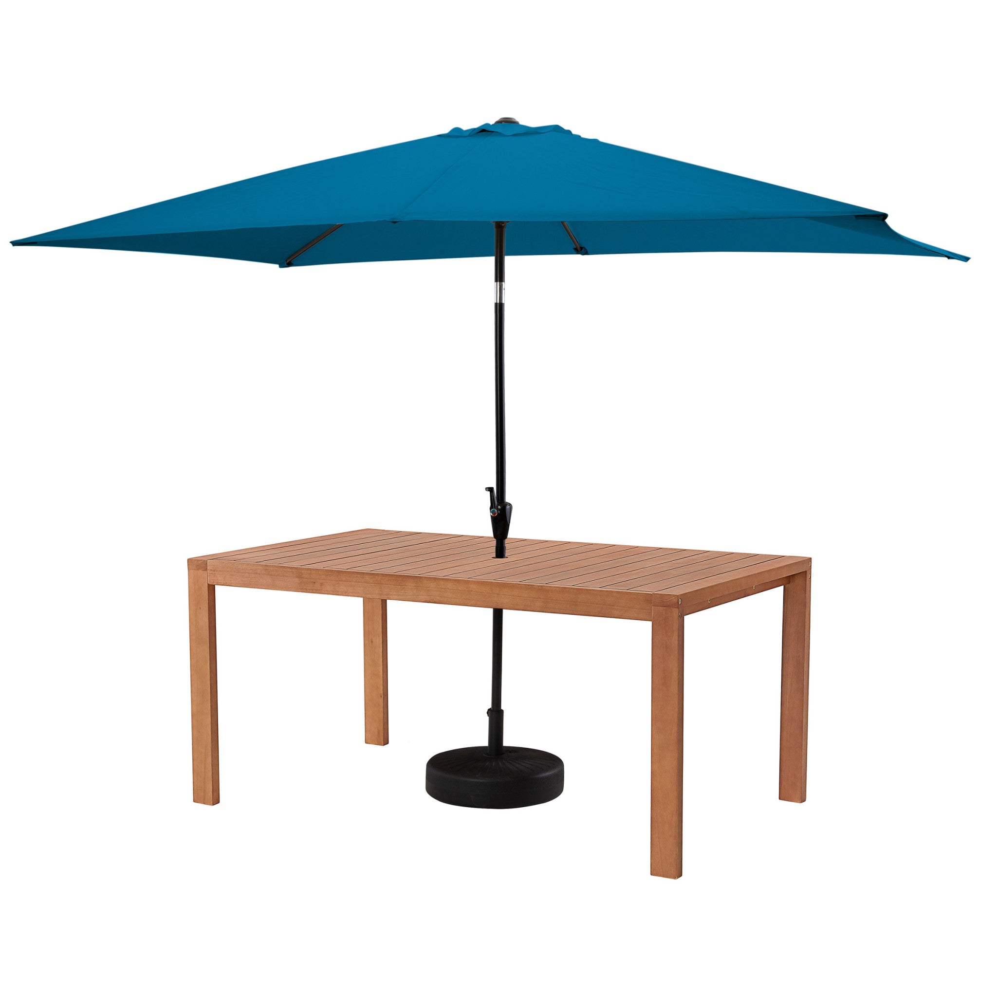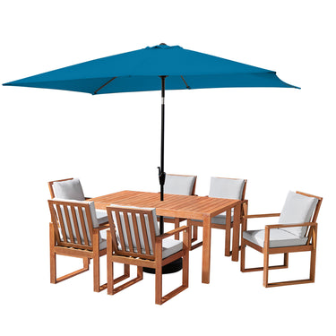 8 Piece Set, Weston Table with 6 Chairs, 10-Foot Rectangular Umbrella Turquoise